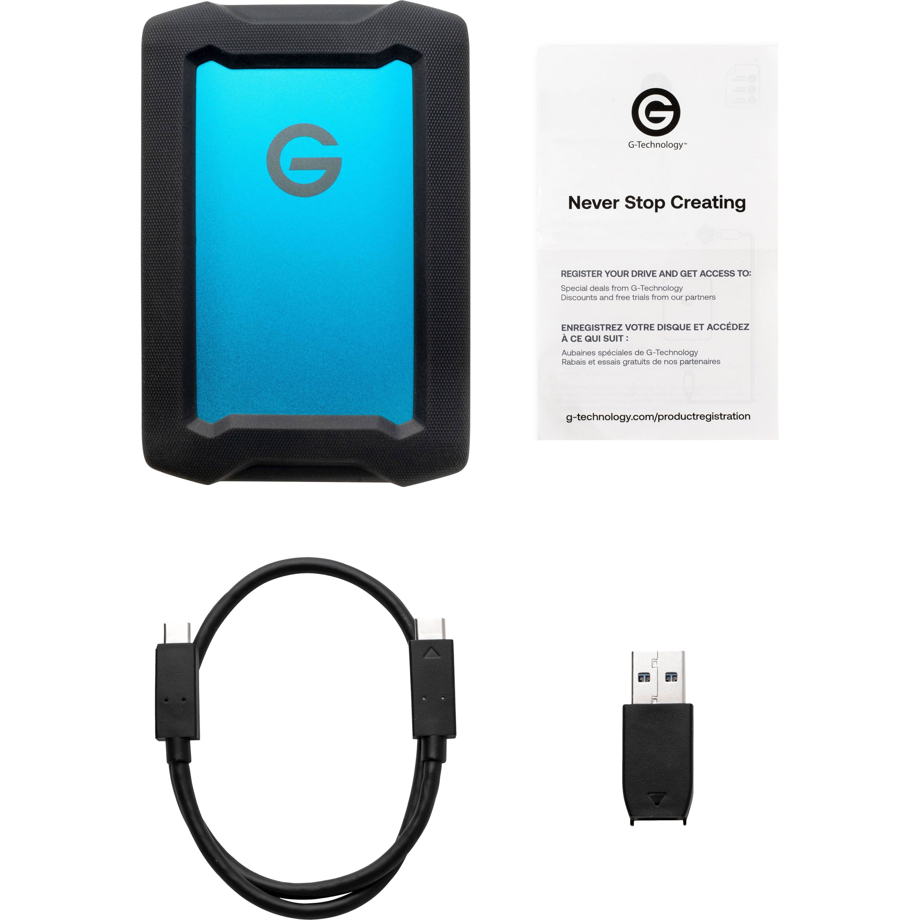 Plug in, store stuff. Easy. Does what it needs to do. Outer case is rugged and feels high quality. Came with a USB adapter for multiple types of USB, which is great.