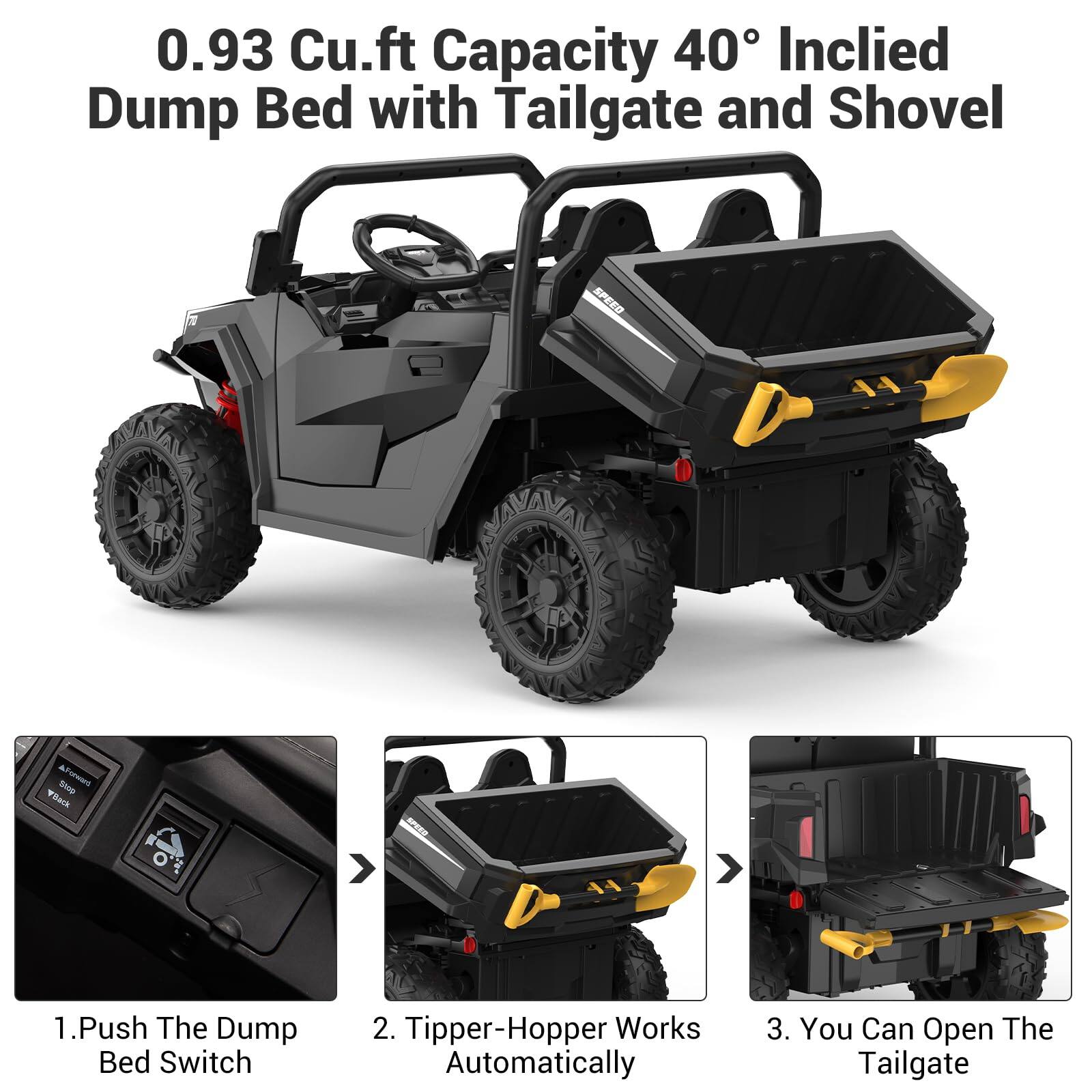 Absolutely blown away by the GARVEE 2-Seater Dump Truck! We bought this for our 4 old boy and it’s been non-stop fun for weeks. The 4WD and 24-volt power make it a beast! It climbs our sloped backyard and powers through grass, mulch, and even muddy patches with zero issues. The dump bed actually works great (he loves loading it with dirt, rocks, and toys using the included shovel), and the remote control is a lifesaver when the little one decides to “drive” toward the street. The LED lights and Bluetooth speaker are the cherries on top! He loves to blast kids songs while cruising around looking like a mini construction site. Build quality feels solid, seats are roomy enough for two kids (or one kid + a pile of stuffed animals), and the seatbelts actually keep them secure. Battery life is excellent too—about 1½–2 hours of hard driving before needing a recharge. If you’re on the fence, just get it. Worth every penny and then some.