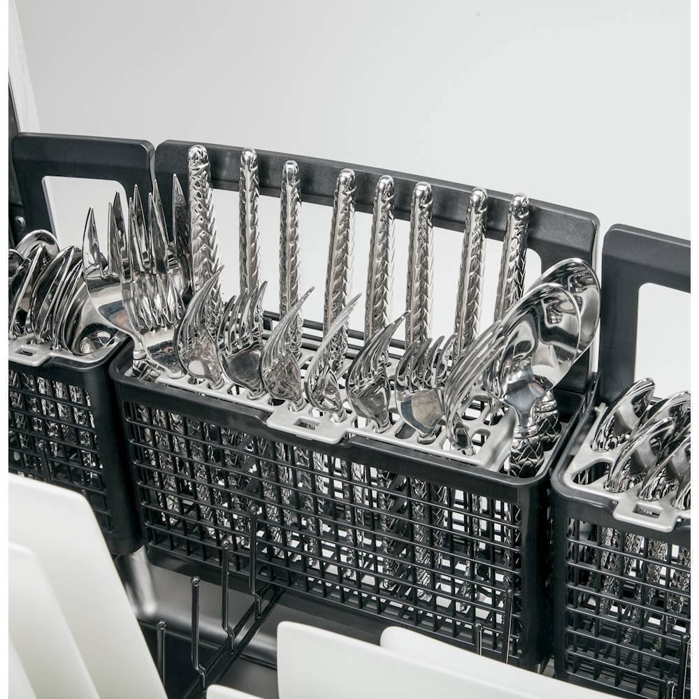 The GE GDT695SGJBB dishwasher does a good job of washing your dishes. I love the third (top) rack for silverware and generally take out the silverware baskets. If I have something that I want to put in the basket, I love that it breaks into 3 smaller parts, taking up less room, so I can just use one small basket. I like all the wash options, including the wash zones. I find you do not have to use the heated dry option. If you open the washer up, the dishes and the tub will dry in an hour or two. I also like the bottle jet clips on the middle rack. I have not run the bottle jet option, but I use the clips to hold plastic. The middle rack adjusts up and down and all my cups can fit in the rack. The washer is very quiet and the dishes don't hit each other while it is running. Of all the new types of washers, I think this is one of the very best for the price.