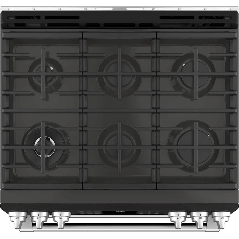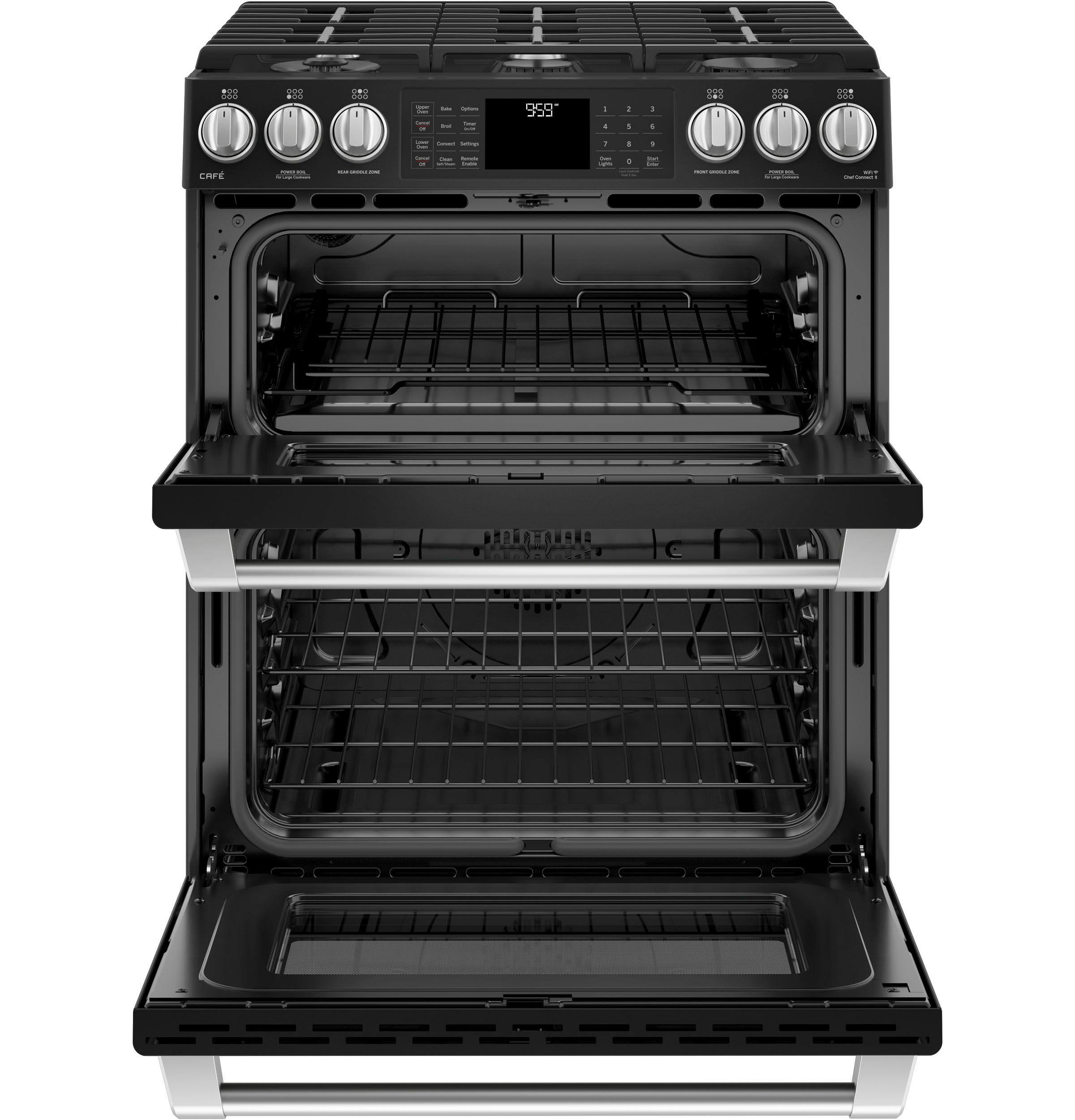 Love this double oven range. Only complaint is that the light in the upper oven has already gone out (not even 6months old), so now I have to make a service call to have it fixed.