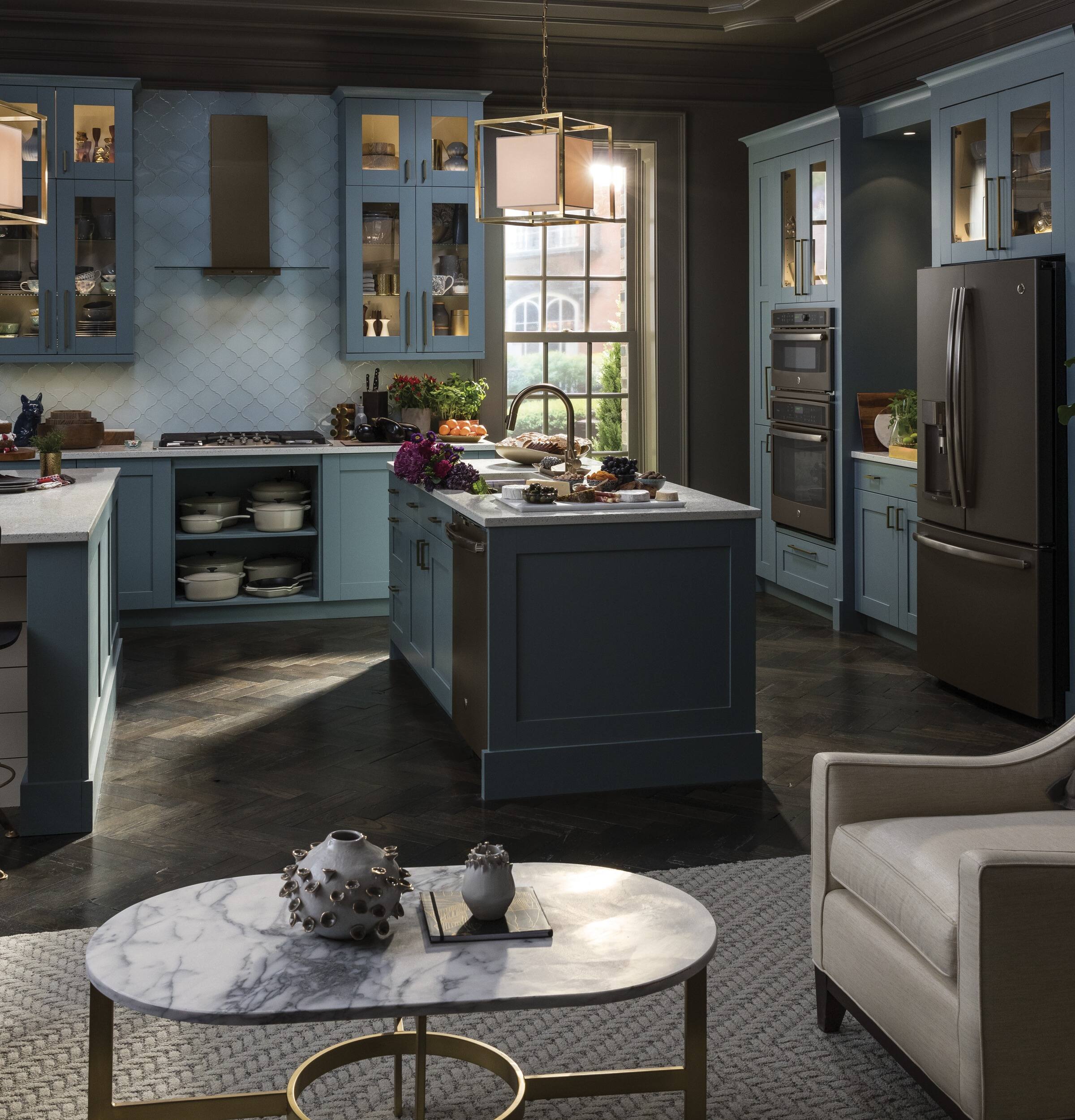 I needed a 36" hood to go with the induction cooktop. DId not want a regular chimney hood, but found this convertible design which allows a more open design. Bonus was the slate color matches everything else.