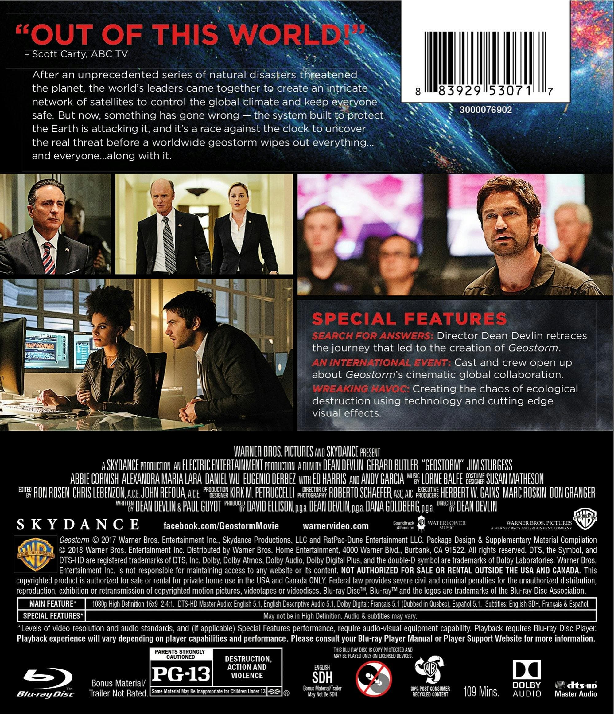Geostorm is your typical Gerard Butler hard core action film so if you like his past work in this genre, you'll like this. The Blu-ray image is very good and the DTS-HD Master audio track gets the job done. All in all this is a fun ride and at the right discounted price a good buy.