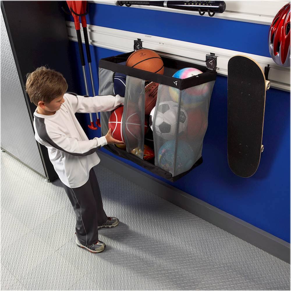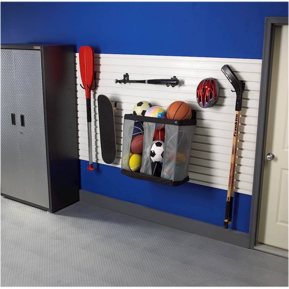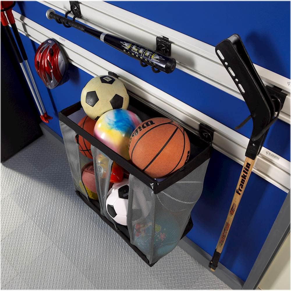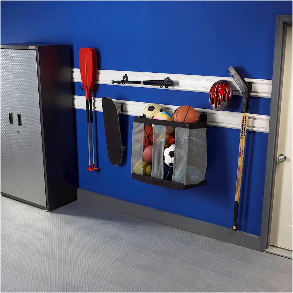 Purchased this as part of my Gladiator Garage makeover. Item sits on the wall and stores everything from sports equipment to shop towels.