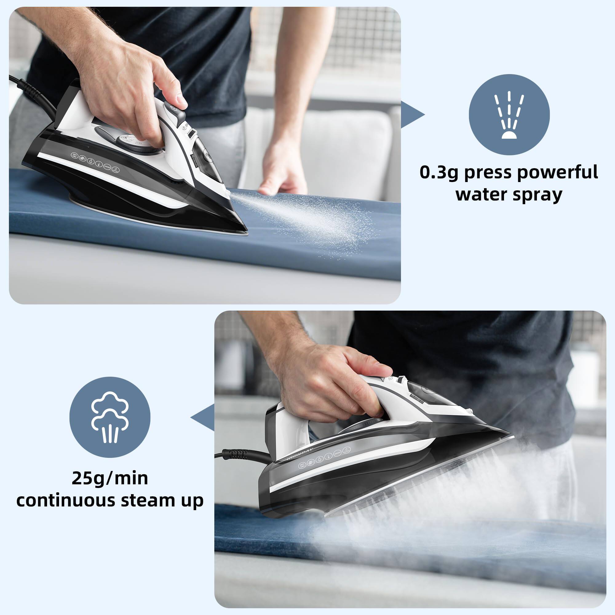I had high expectations for this irons performance however my expectations were shattered after first use. The Iron fluctuates between hot and cooler. The steam function provides minimum steam and overall the irons performance is disappointing , at best. I would not recommend this iron. I had to return first one I received because of shipment damage. Best Buy does not represent you if this is a separate vendor of theirs.