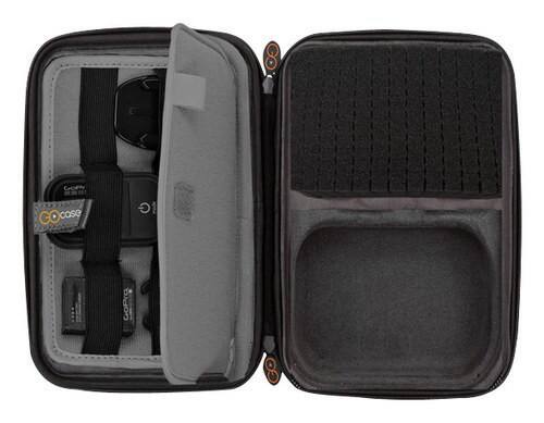 Just got the case delivered today. It's not a rigid case - it will flex inward a goodly amount when pressed in the center. Case is beautifully lined in microfiber. Left side is quite shallow. Not enough depth to hold GoPro brackets. Works best for accessories 3/8" thick or less. Will just hold an iPad with a Zagg keyboard/cover without the organizer piece. Right side has cubed foam for the top half, presumably for the camera. Bottom half has a nice zippered pouch; it just holds the GoPro head strap. Right side is only about 1.5" deep. If you have many accessories, this case will not hold them all. No hope of getting a chest harness inside. Has a carry handle attached at the hinge side. I would not trust it as a secure attachment point for any high risk activities.