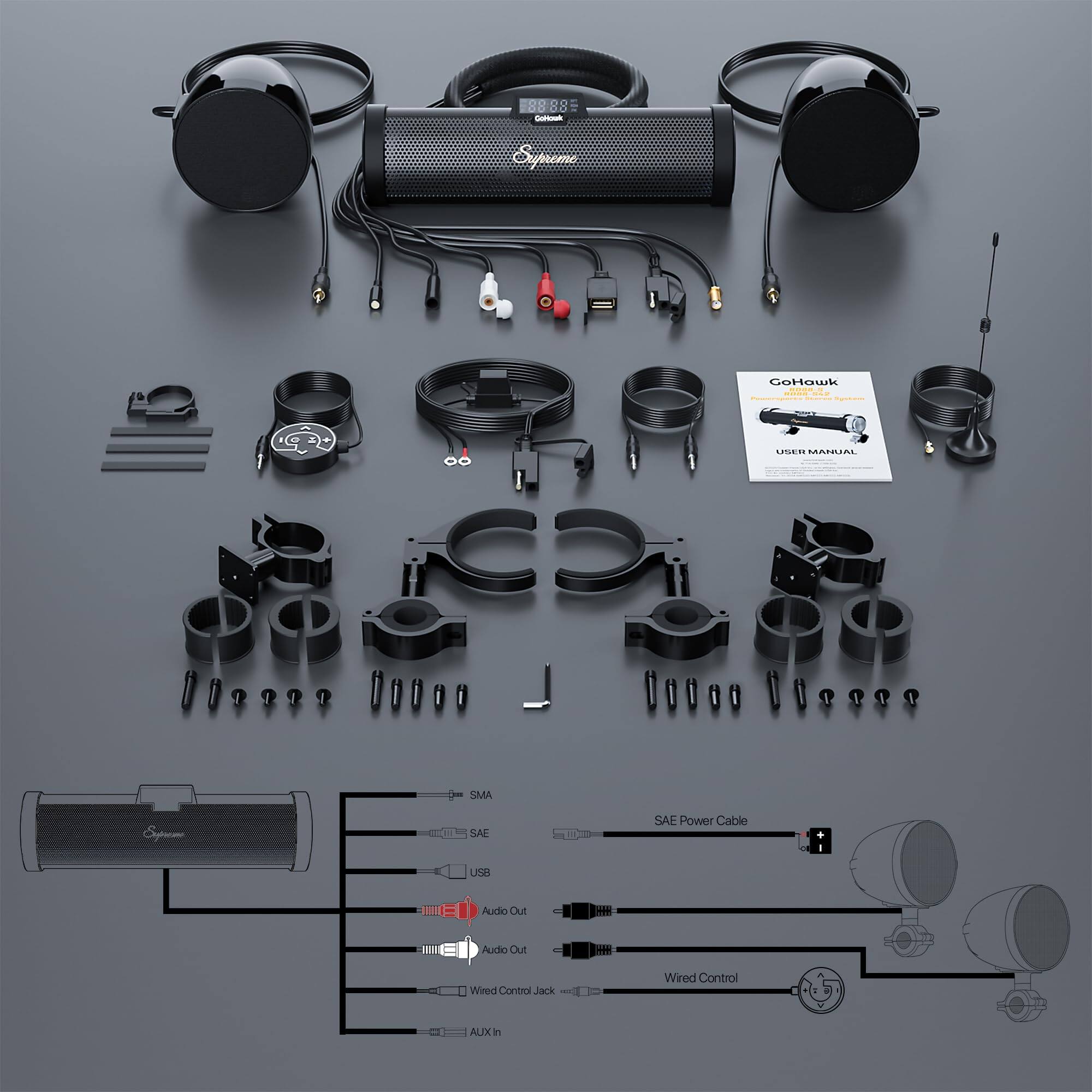 It was hard to find enough space on my handlebars to install everything. So I installed the satellites on my forward crash bars, because I needed my phone mount and cup holder on the bars. I may reposition these later if I find a better spot, I would assume it would sound louder if the satellites were up higher.