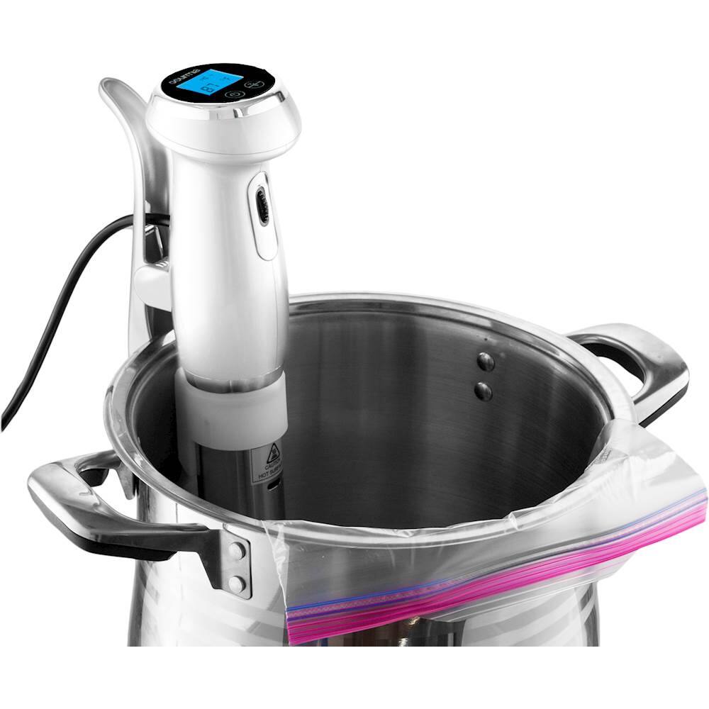 This Sous Vide Pod is awesome! I used it to make large soups. normally when I use an immersion blender I always risk burning myself while making soup. This one allows you to clip it to your pot so you dont have to worry about that potential hot soup scalding. I also really liked they give you a little recipe booklet for some fun cooking ideas.