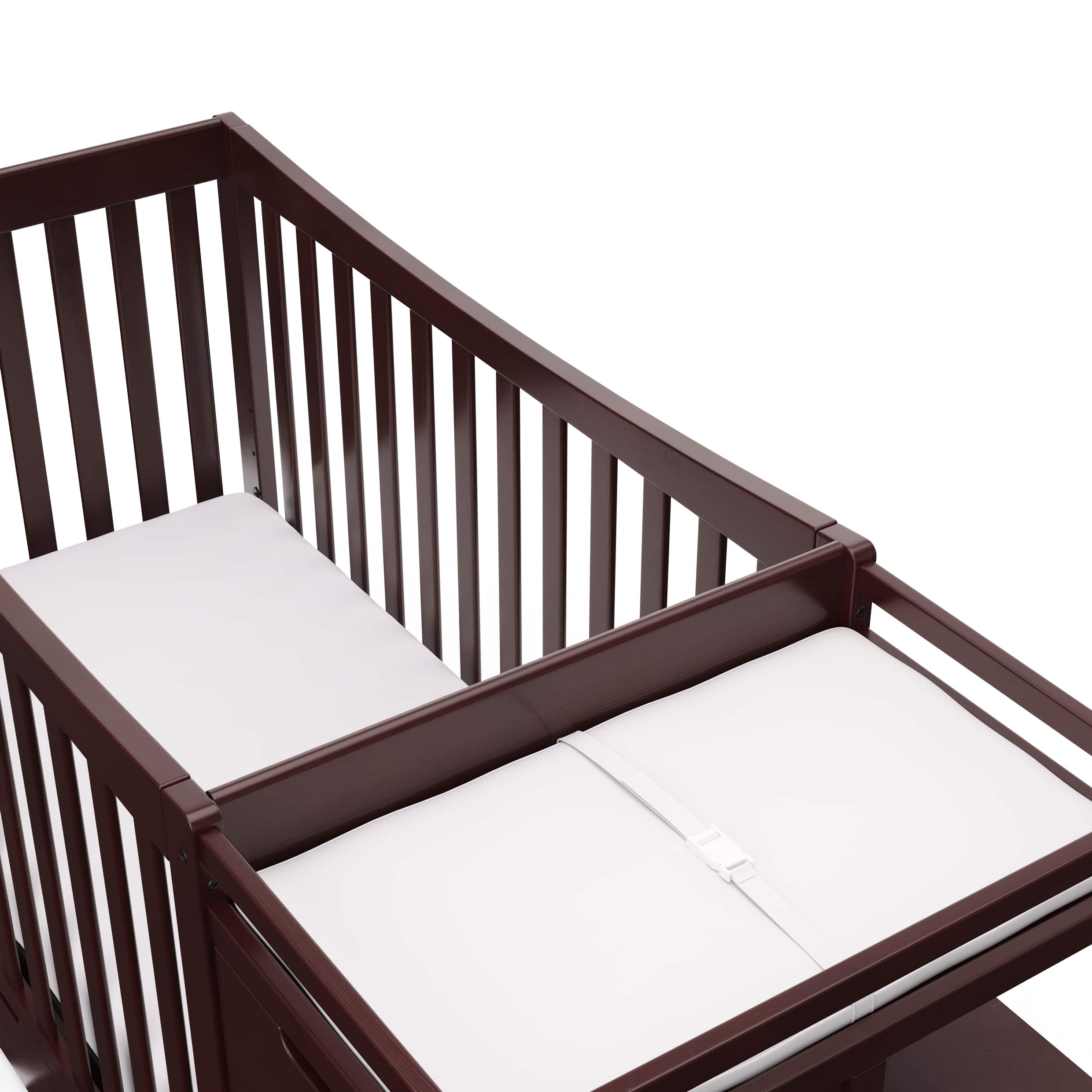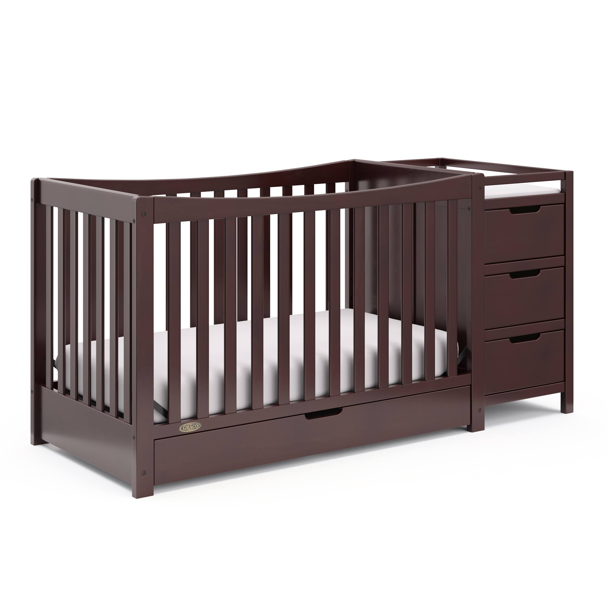 This crib is large with lots of storage. Sturdy and works perfect in his room!