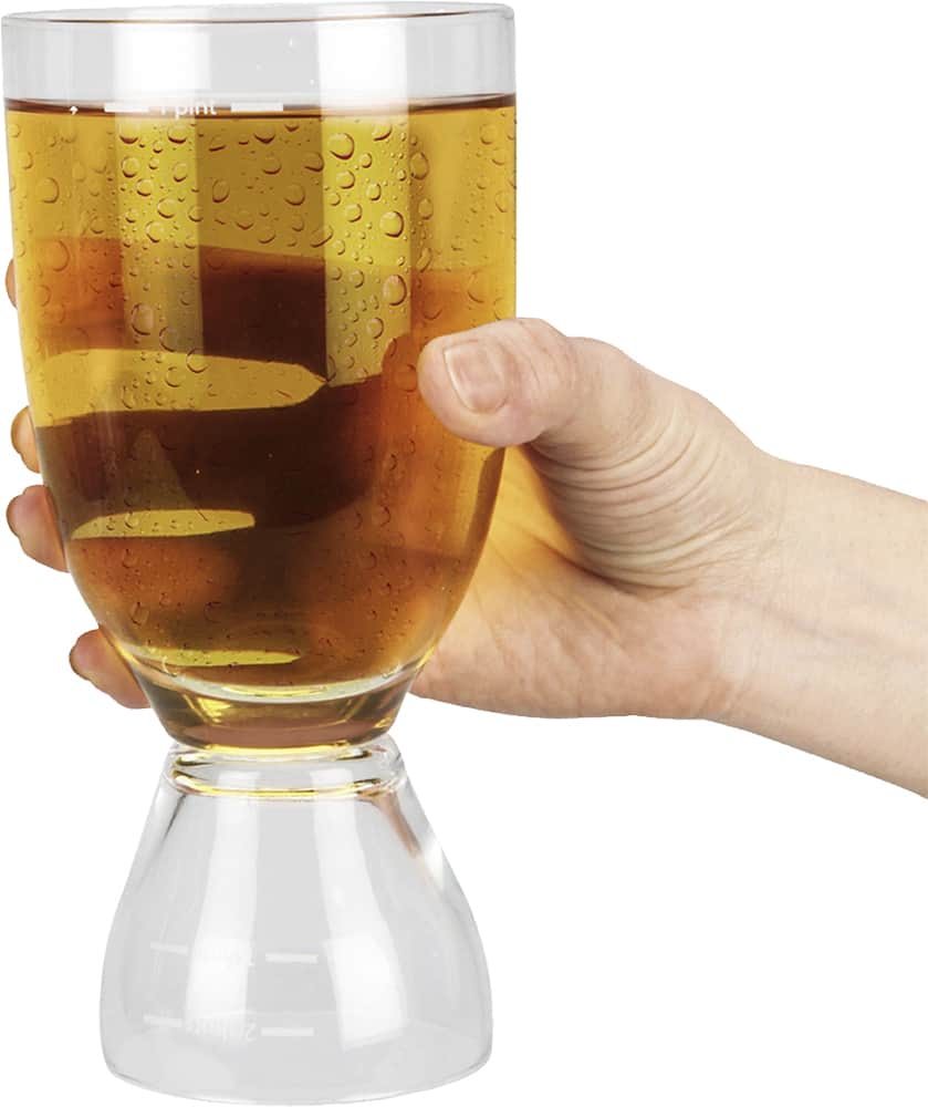 The dual shape provides for use as both a beer mug or shot glass, which makes it great for travel.
