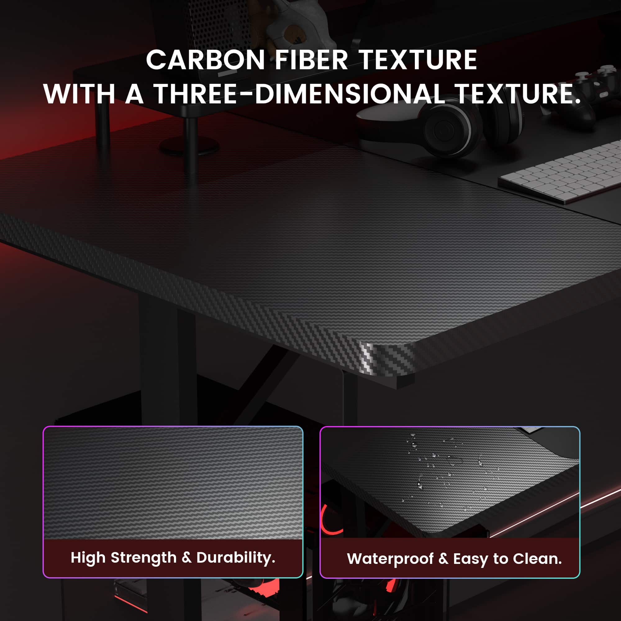 I needed something to fit my full sized keyboard, 32 inch monitor, a desk mat, and my full-size pc case. This desk comfortable holds all of that with some extra room. I like the cable holes and the headset hooks. Some of the building instructions are a little unclear at times but I got it done in an hour or so. I wish the lights were pre-installed into the desk but that would cost more money, and the whole premise of this desk is “bang for your buck”. A good pick overall.