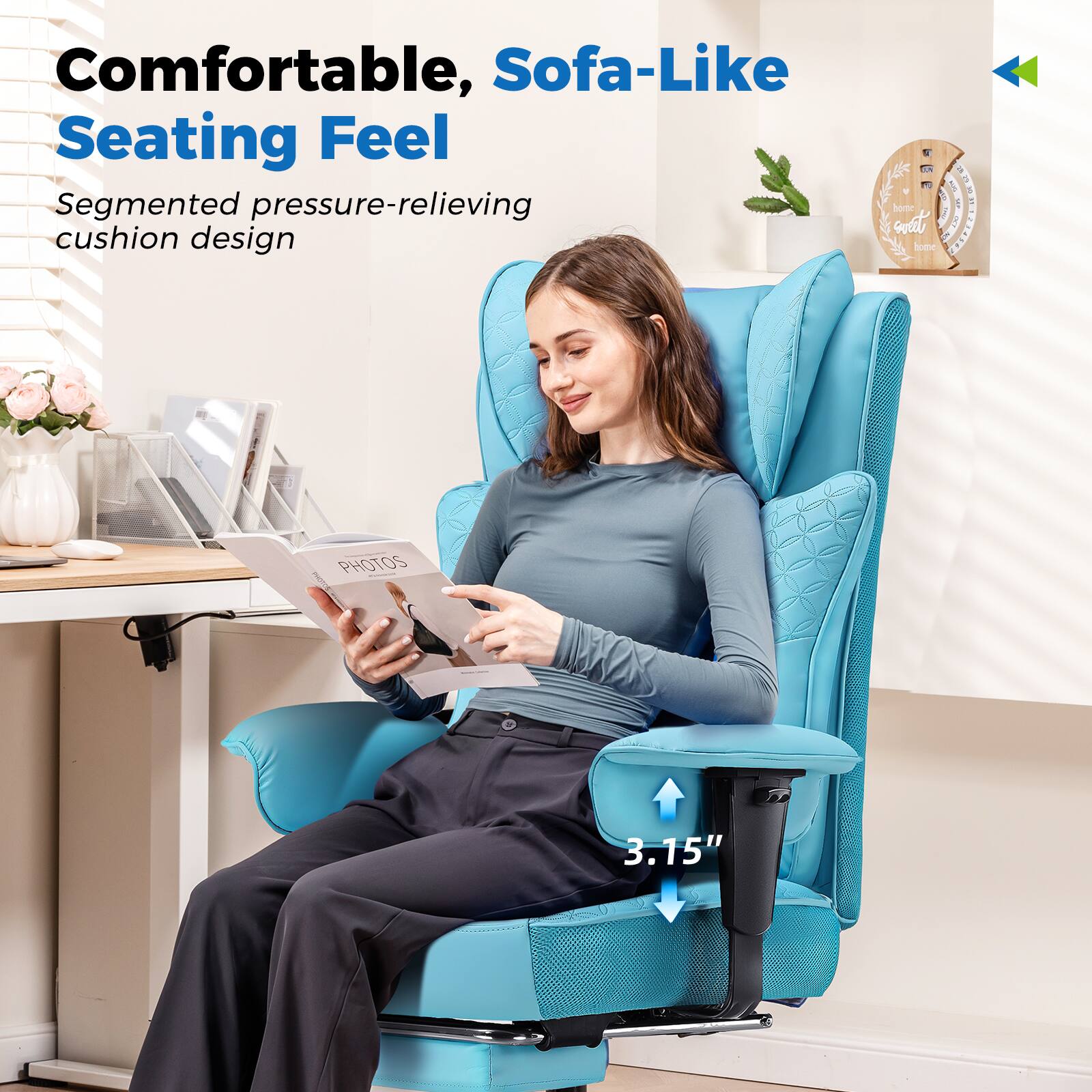 I am very impressed as to how comfortable this chair is. We have it in our home office, and we are so pleased with this purchase. Highly recommend!