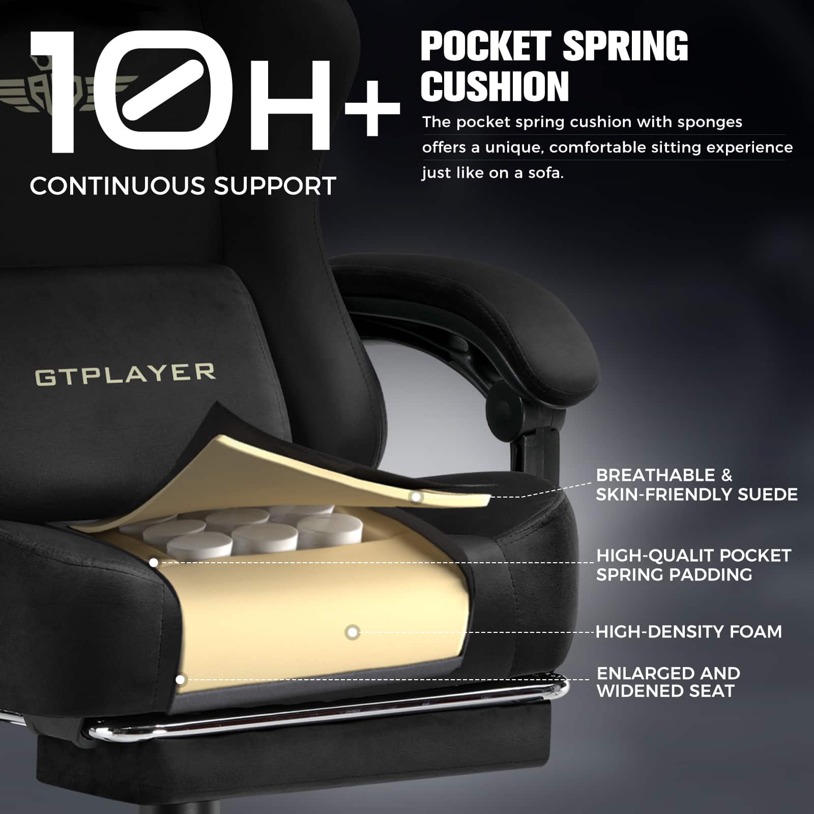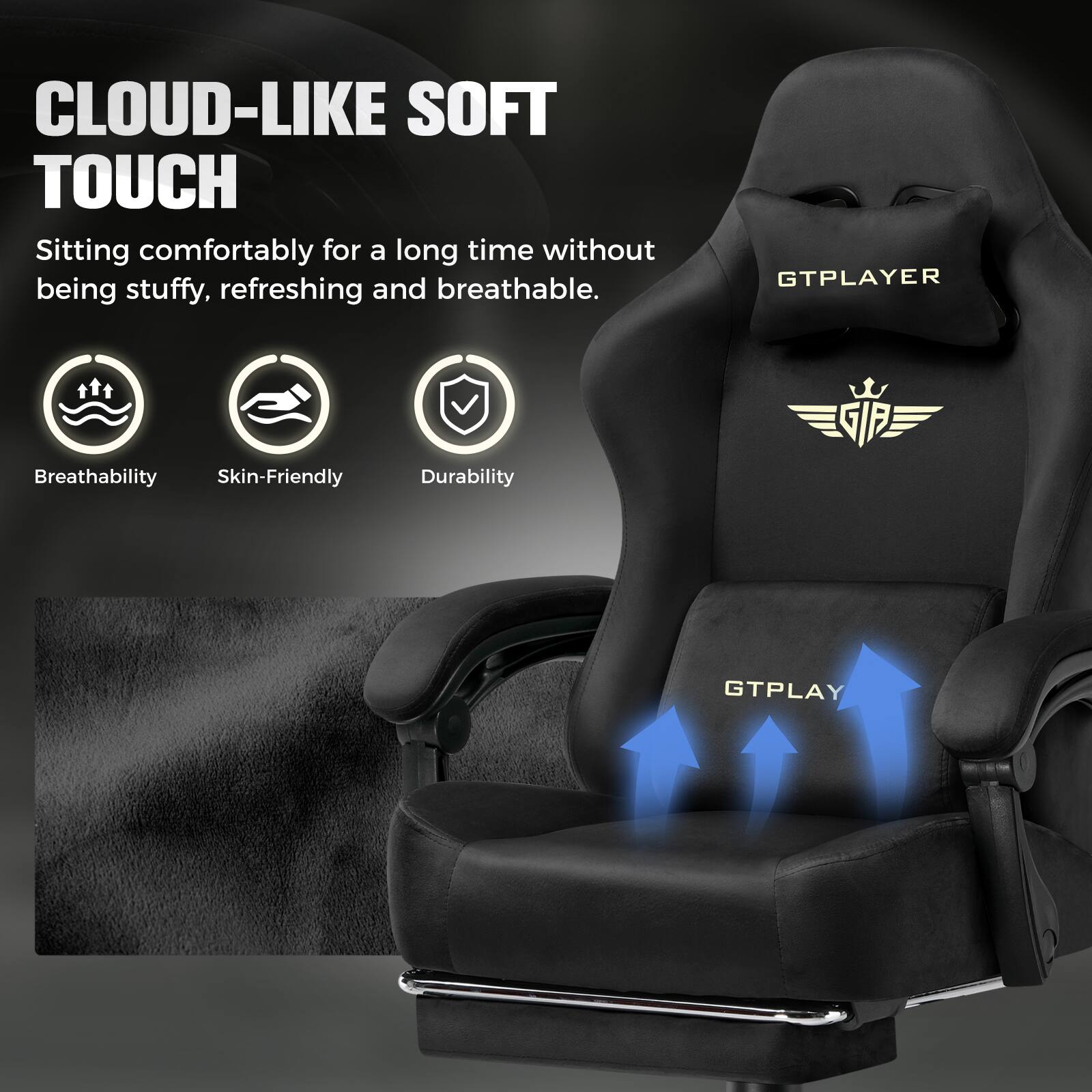 Super cute and comfortable gaming chair! It has pillows for your lower back and neck, reclines really well, and even has a pull-out footrest. It’s very soft and comfy. Definitely recommend this GT Player chair!