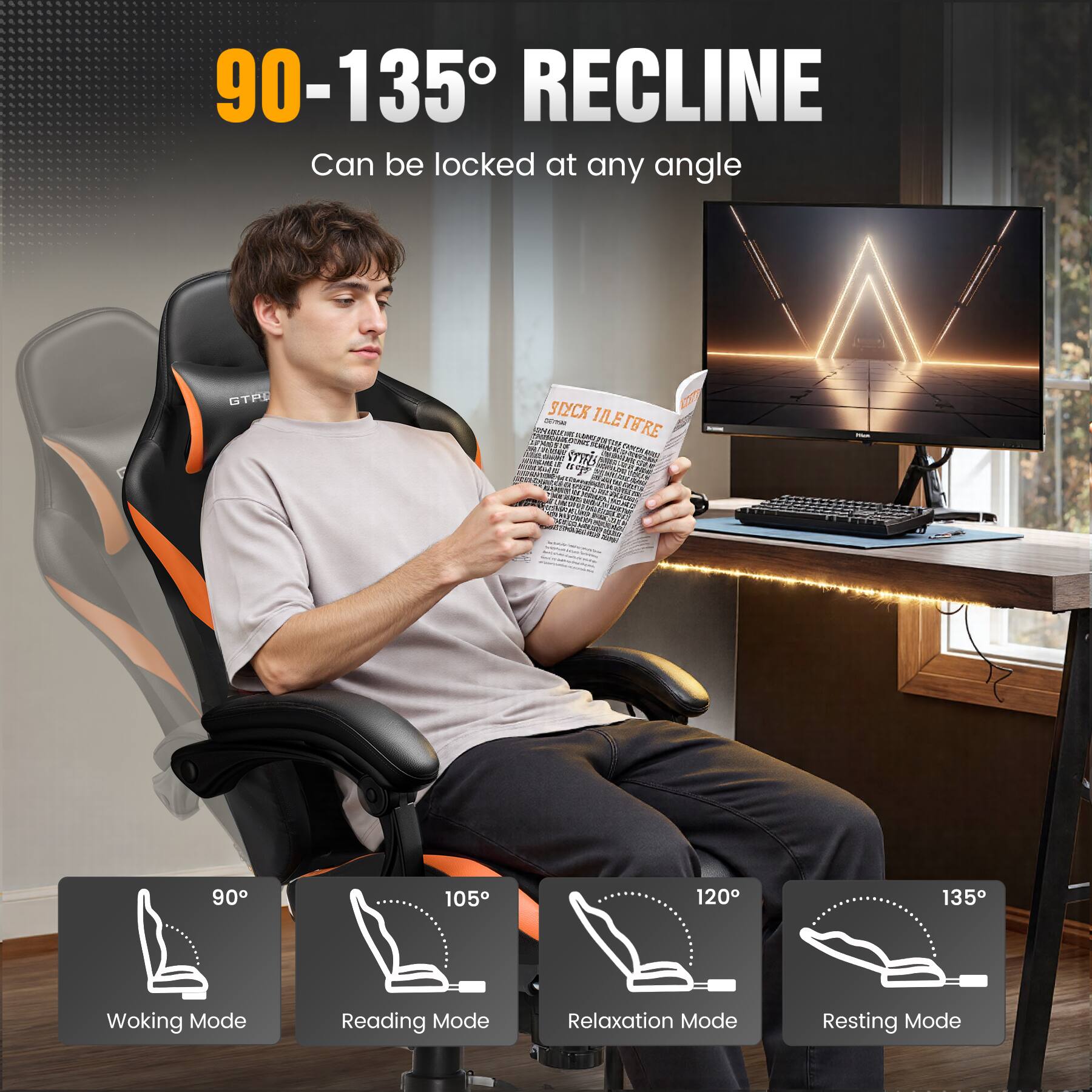 Our chairs are designed based on extensive market research to meet the needs of most people. They are also of superior quality and come with a one-year warranty. If you need to take a nap on the chair, remember to use the footrest and 135 degrees for more comfort!