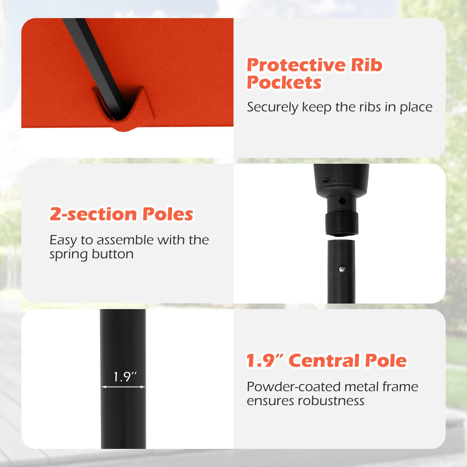 Very happy with the umbrella. Provide ample shade. Material is much higher quality that I anticipated for the price. Seems to be very durable.