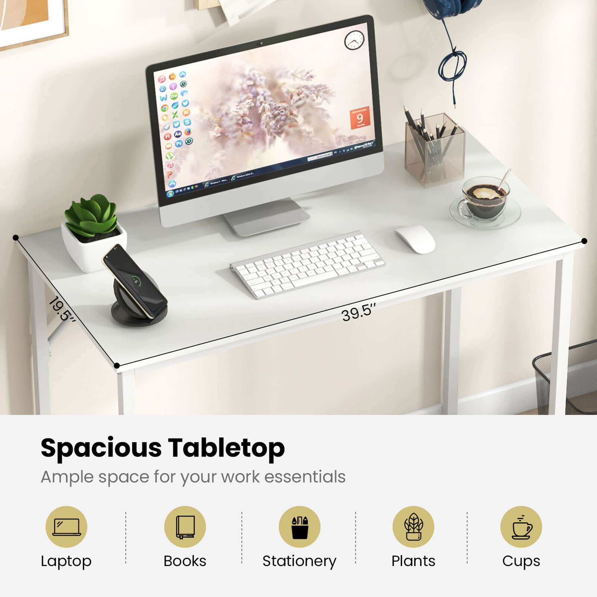 You can have a computer, papers, books etc.
