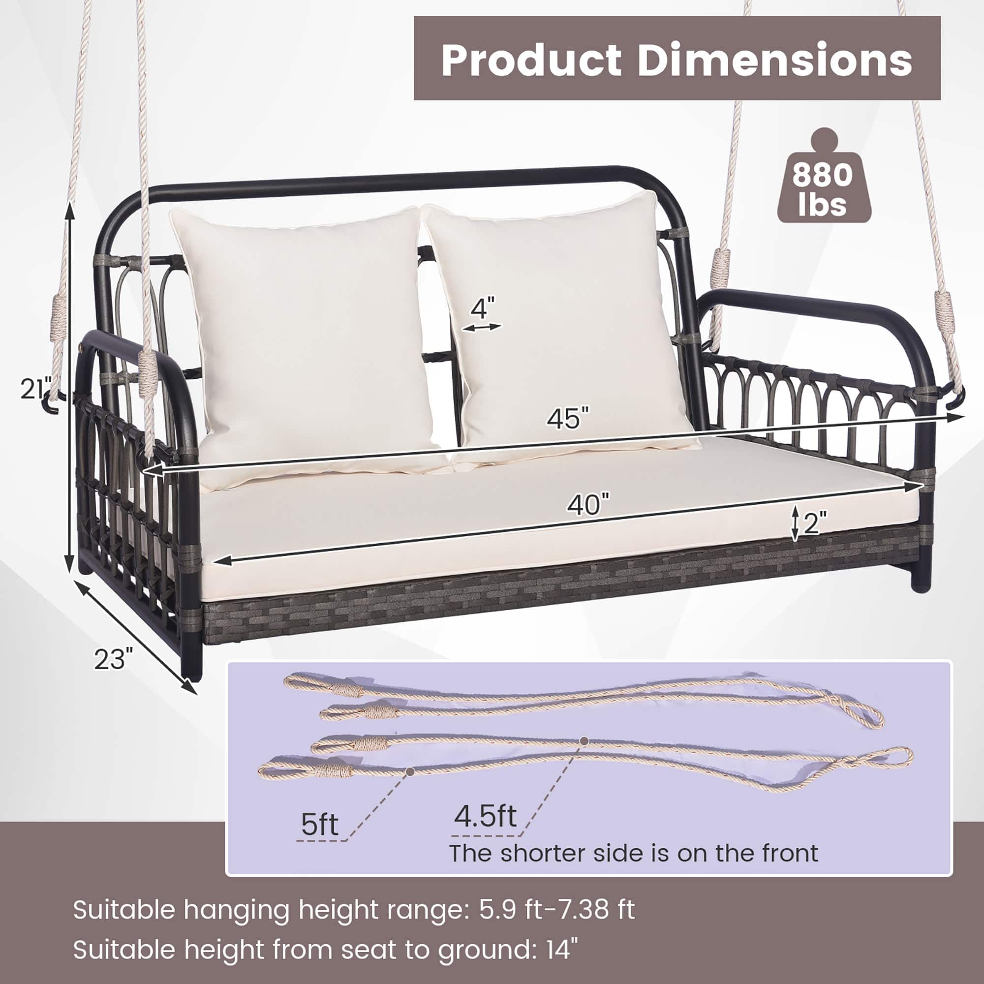 Swing is extremely high off the ground. The ropes are not long at all.