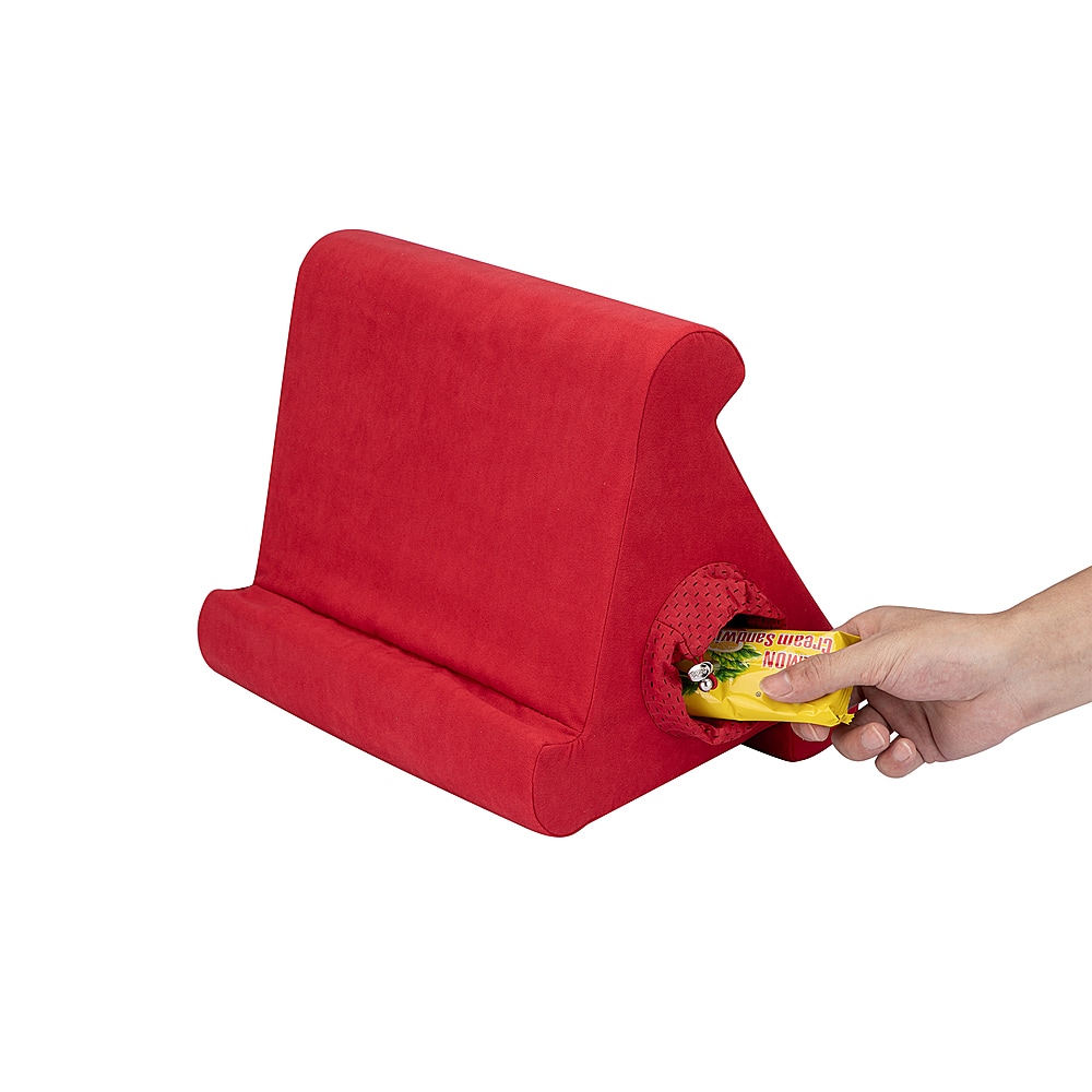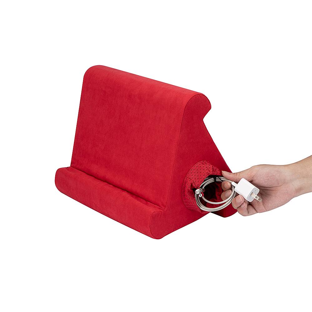 Perfect for the kids, road trips and just lounging on the couch. Sturdy foam inside a soft velvety feeling cloth that is easy to keep clean. You can adjust it to view your tablet in different angles.