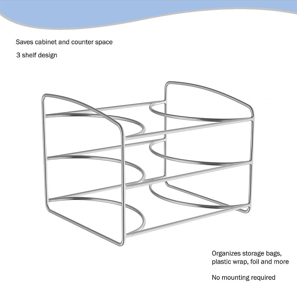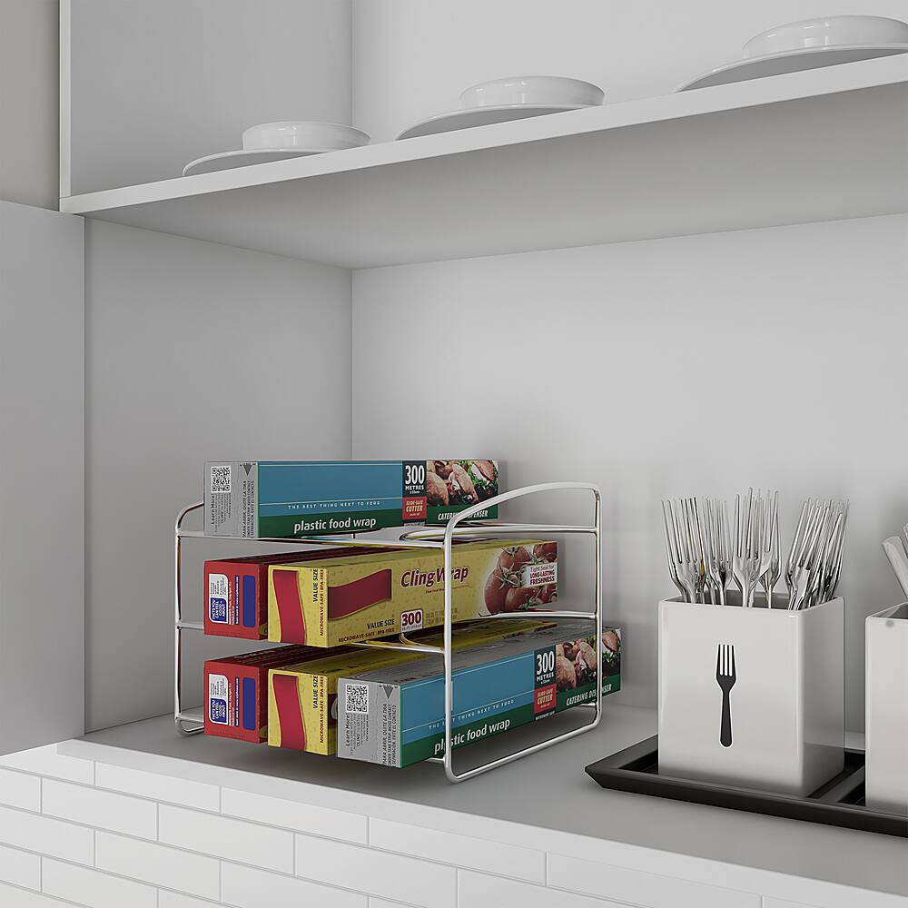 simple wire rack good for placing my foil paper, wax paper, and other rolls for wrapping and preserving foods or preparation in the kitchen in an organized and civilized manner as before that it was like hunting all over the pantry and kitchen appliances for them lol.