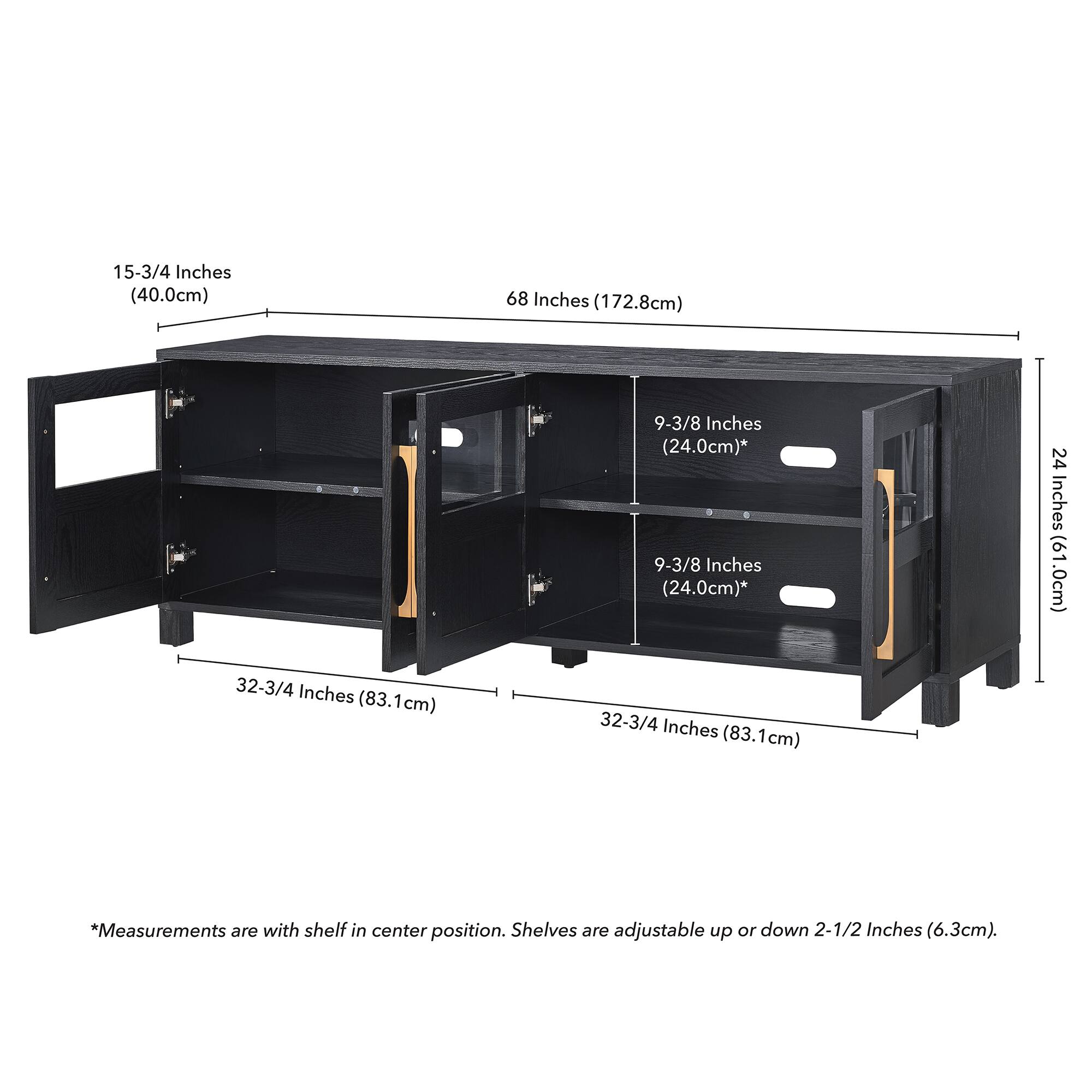 This was the perfect size for my 75” TV. Great storage space below for gaming counsels and book. Love the window on top to display décor. Was easy to put together by myself.