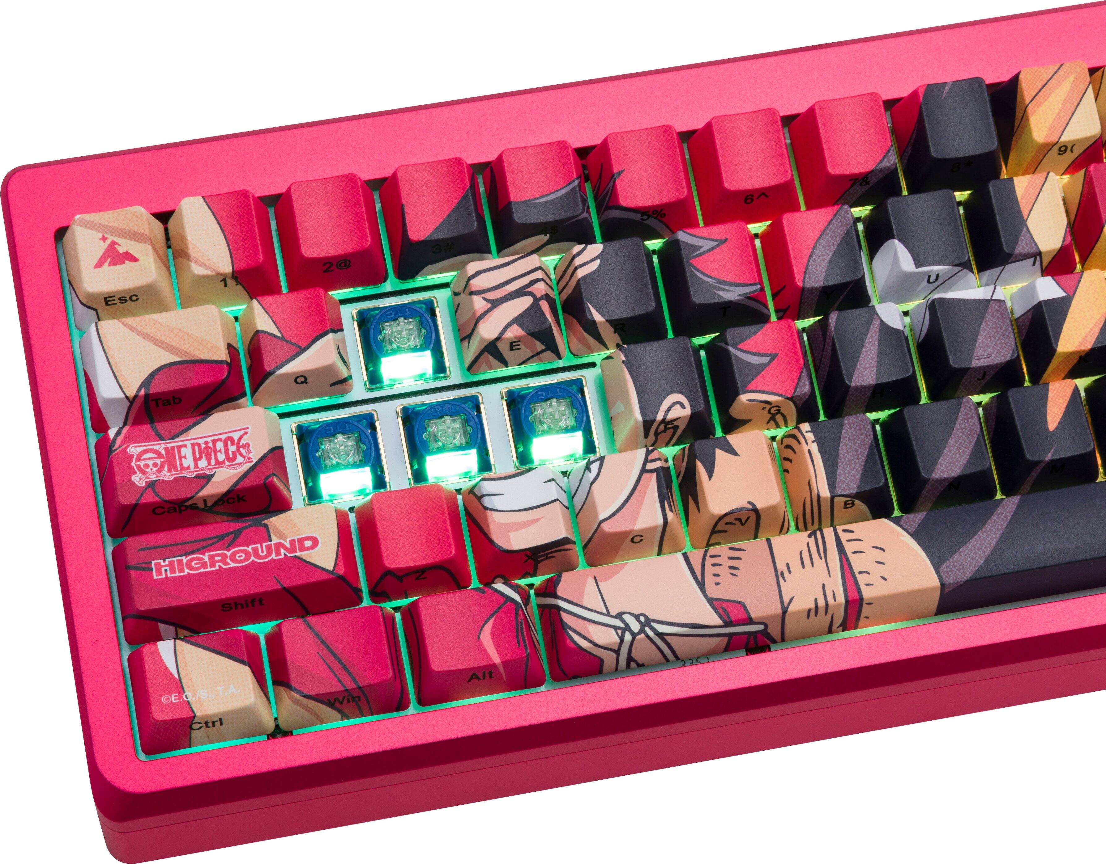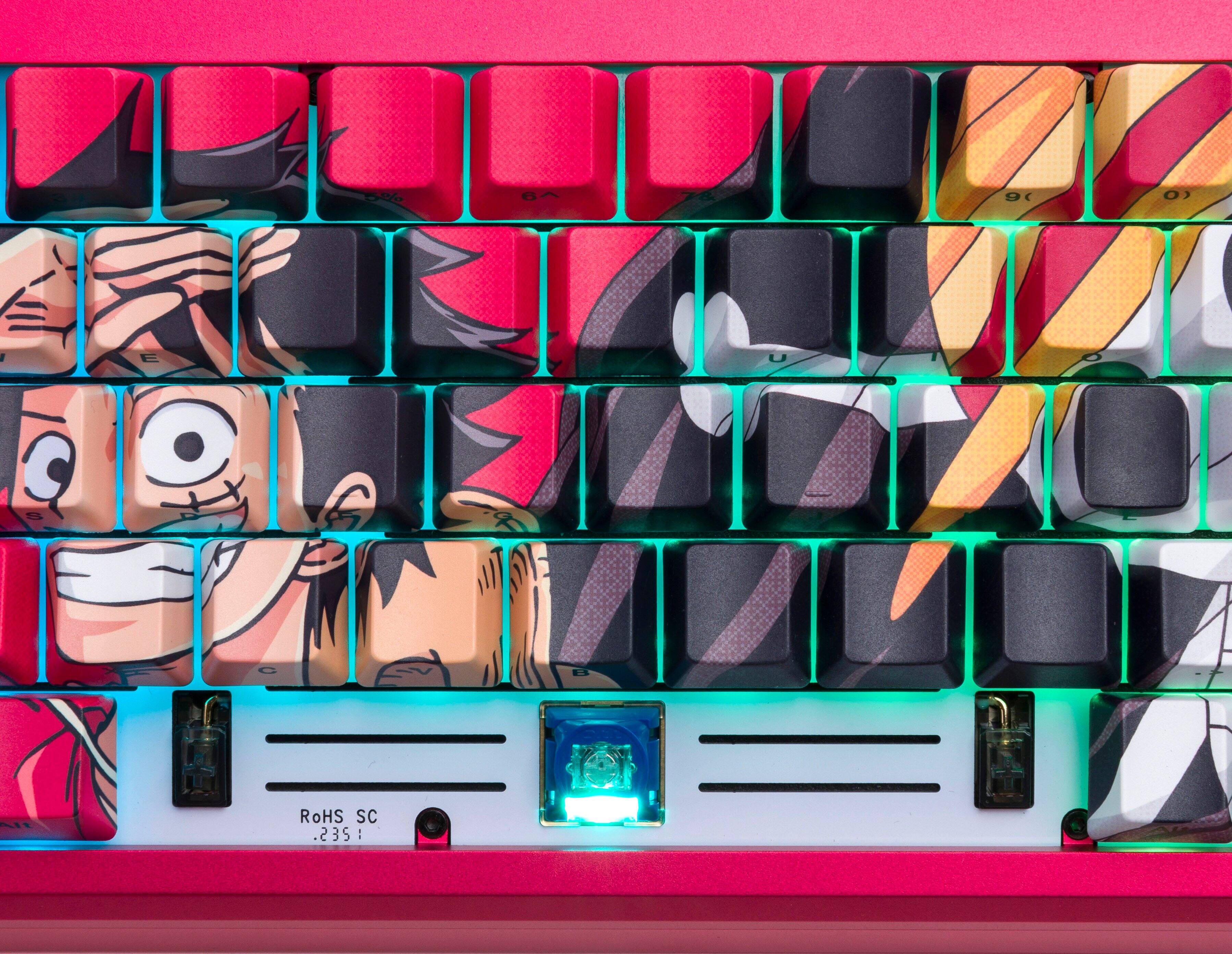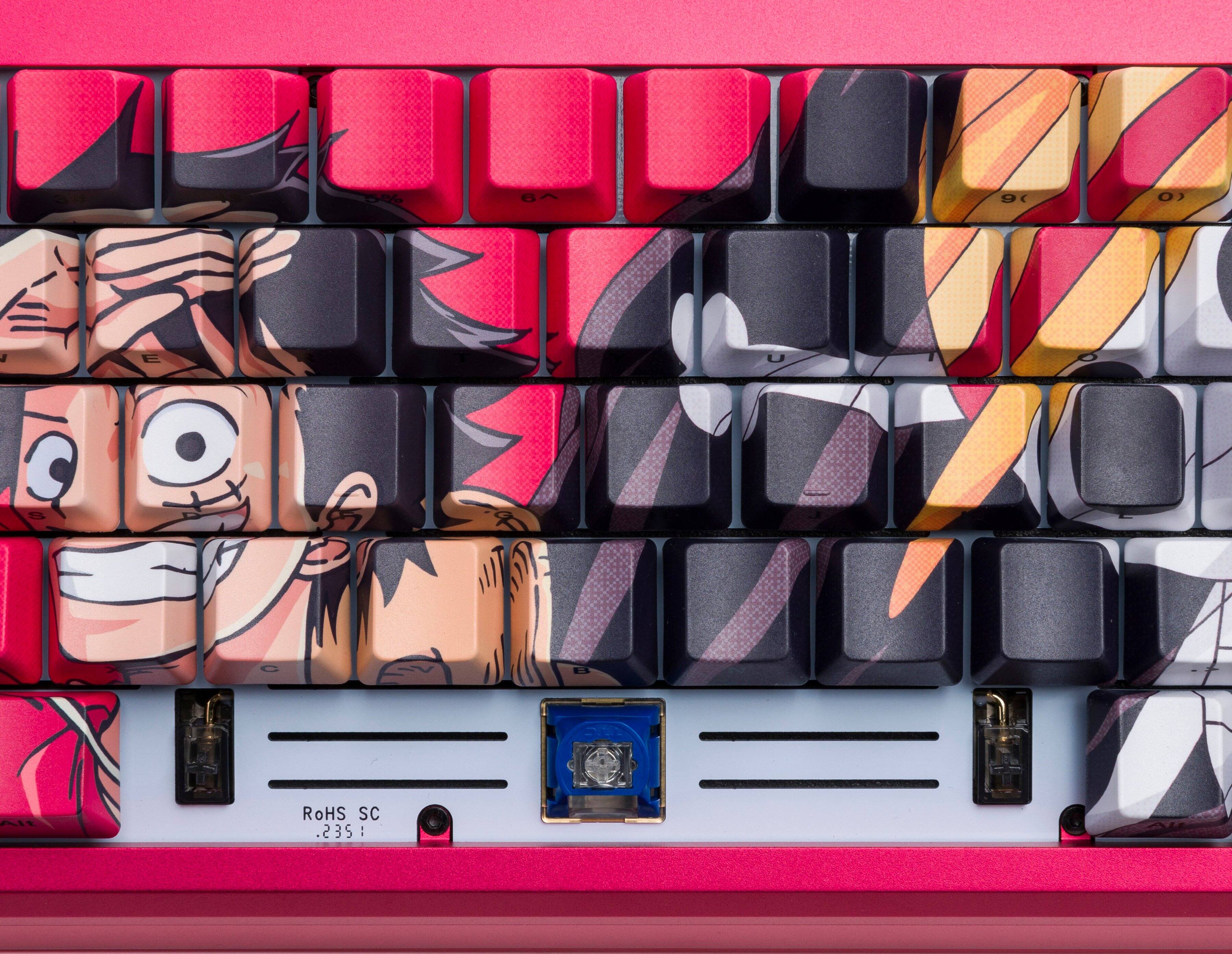 Literally one of the best typing experiences I have ever had buying a keyboard. It is a bit pricey, but you get what you pay for. I love how the keyboard sounds to the point where i enjoy having one headphone off and hearing the typing noises. I don't even watch one piece but I love the color red, the guy looks silly so I enjoy looking down.