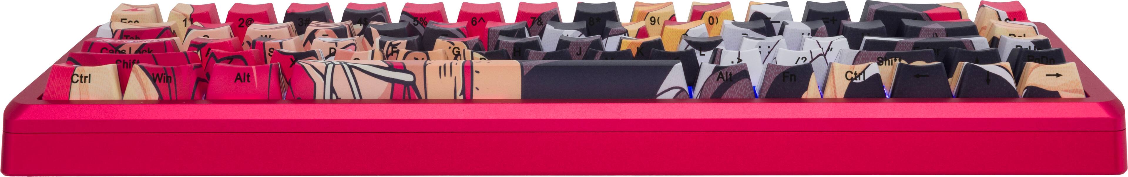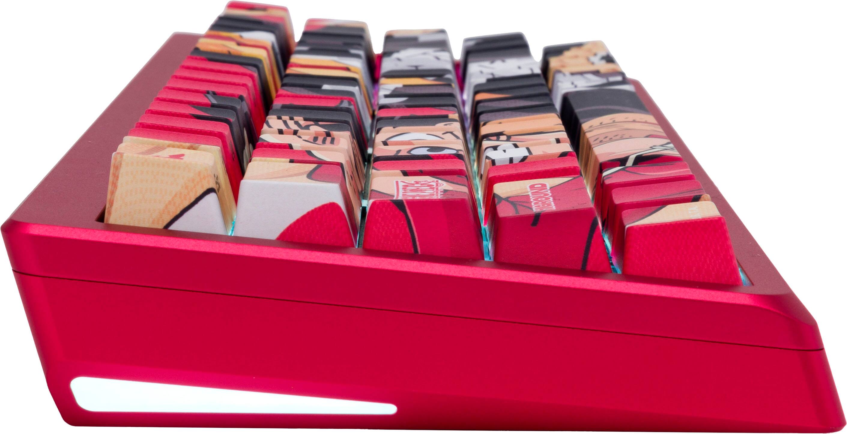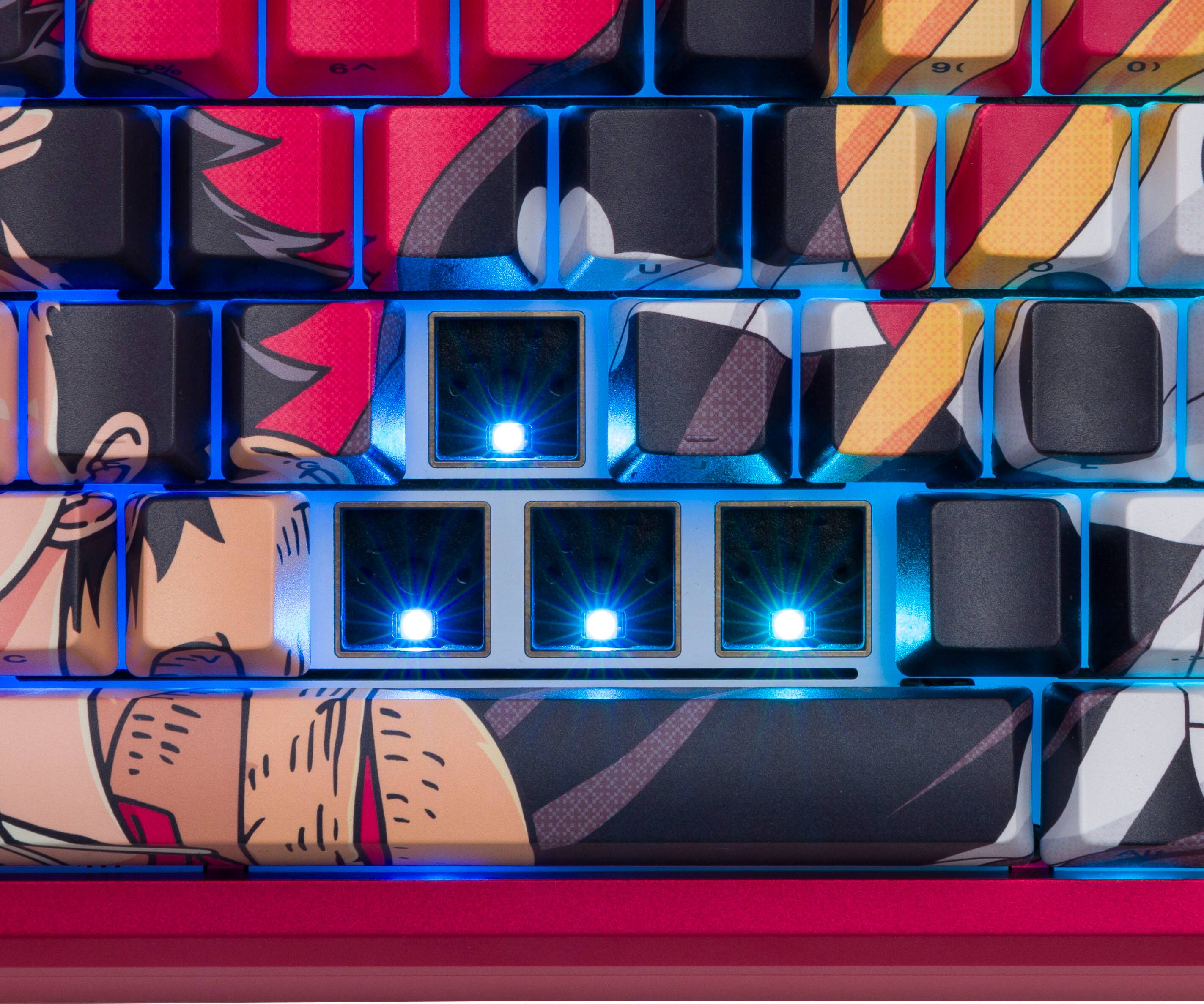 Literally one of the best typing experiences I have ever had buying a keyboard. It is a bit pricey, but you get what you pay for. I love how the keyboard sounds to the point where i enjoy having one headphone off and hearing the typing noises. I don't even watch one piece but I love the color red, the guy looks silly so I enjoy looking down.