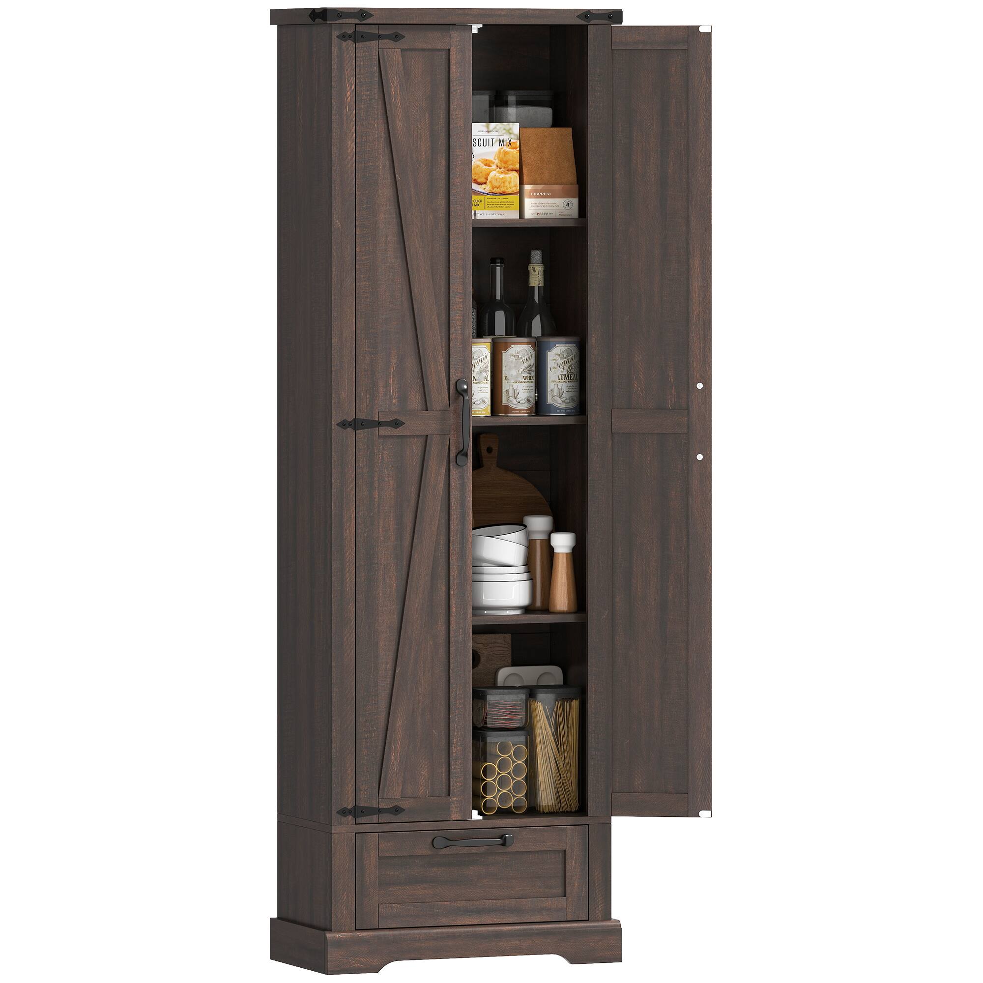 This piece is exactly what I needed to store my baking supplies and more plenty of shelf space and shelves on door hold a lot too. Easy to assemble and looks great for the price. Would recommend for someone looking for storage at a great price and a great look.