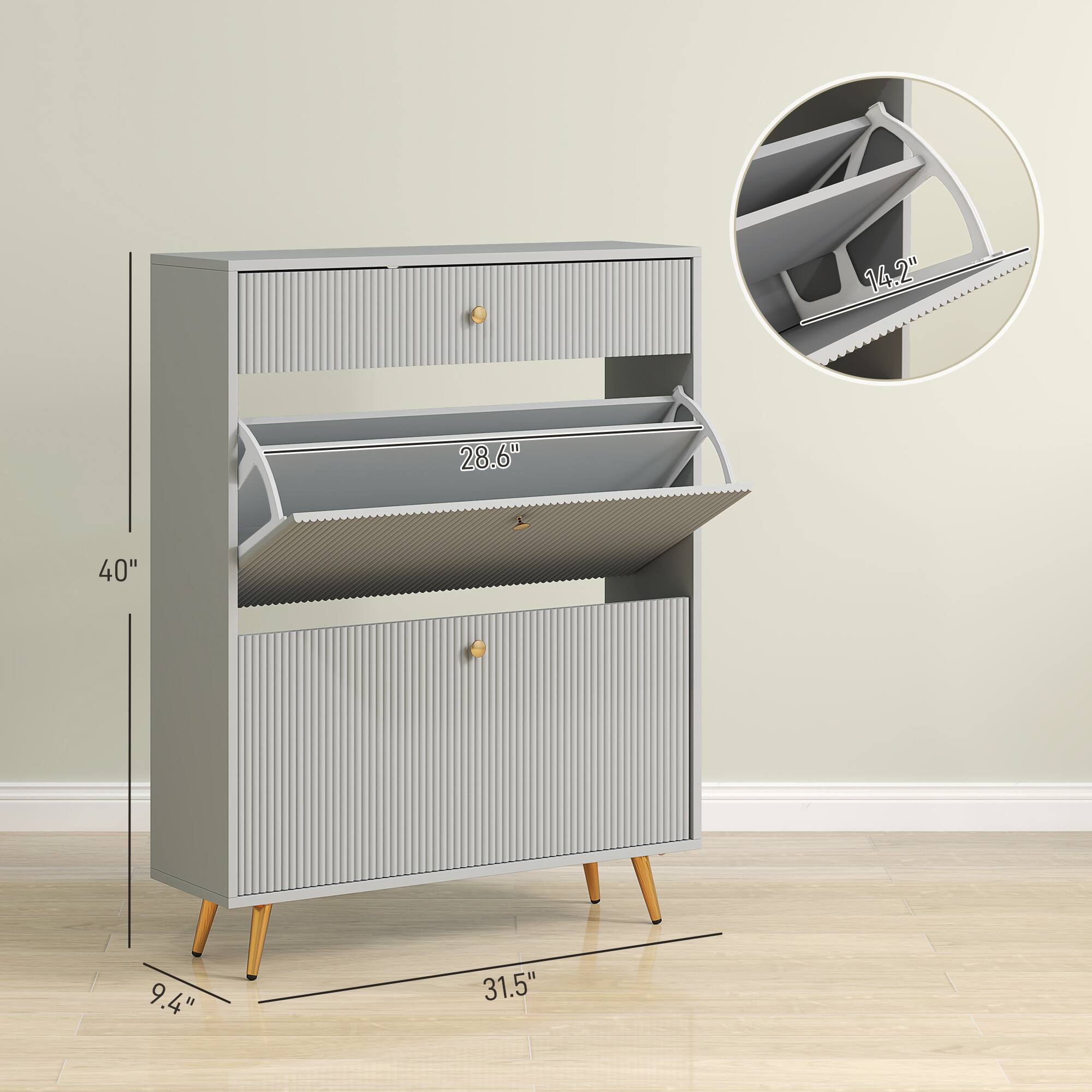 The cabinet itself is very thin and sleek. Works very well in entry ways or tucked away in a corner.