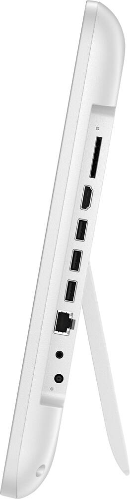 Pros: lightweight, less space than traditional pc- footprint, regular key board and led mouse, nice white finish, wireless capable, built in webcam, nice large 19.45 inch HD screen, fast start-up