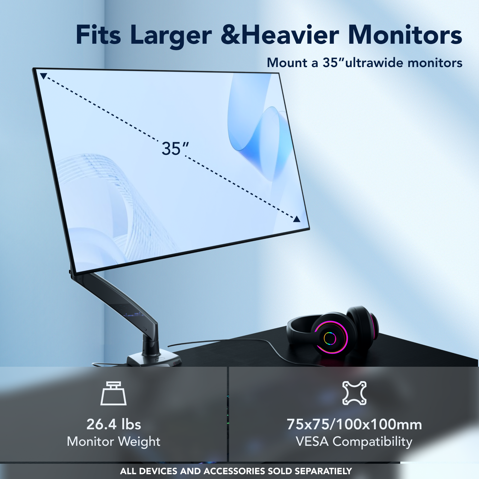 Works a s designed, easy to adjust monitor to where you want it. Seems very strong & durable. I am satisfied with the product thus far.