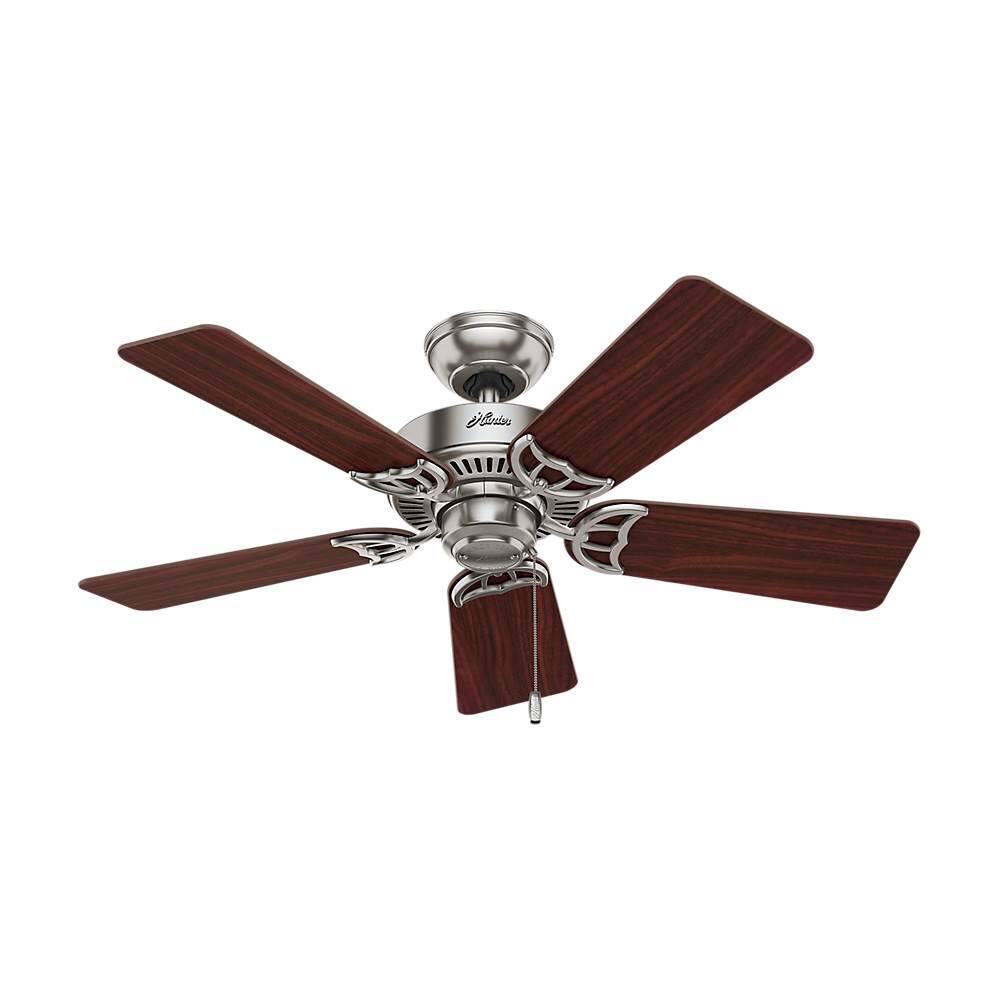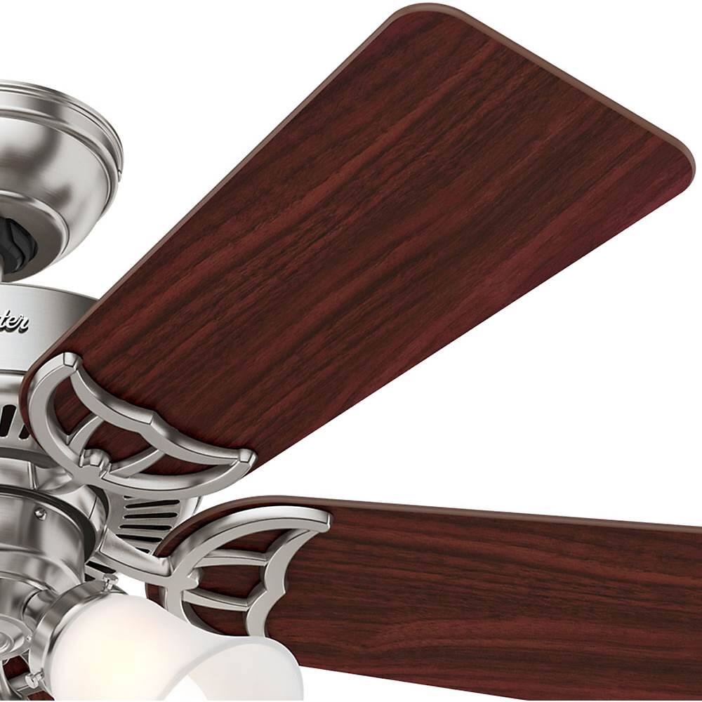 I needed a replacement fan the Hunter brand has always been a quality product line. I chose the 42" as a 52" was just to big for the room still a great upgrade from the current old 36". I felt the higher amount of air movement at a lower speed and the brush nickel aesthetics was a perfect choice. The install is pretty simple as I have changed a few fans before. Your wiring is straight forward just make sure power is off before removing the old fan first. I always apply a small amount of blue loctite to each fan blade mounting screw (3) and the fan motor mount screw (2) threads. Only apply the as your assembling the parts to be installed. This is a simple solution to retain proper tightness of the fan blades over time. You can always use a little nail polish, color doesn't matter it will work just fine. Reminder, don't over tighten the screws when installing the blades to the fan motor. I only go over them the second time to check & even tightness. That's about all it takes to enjoy your project. Thank you for reading my review. Good Luck