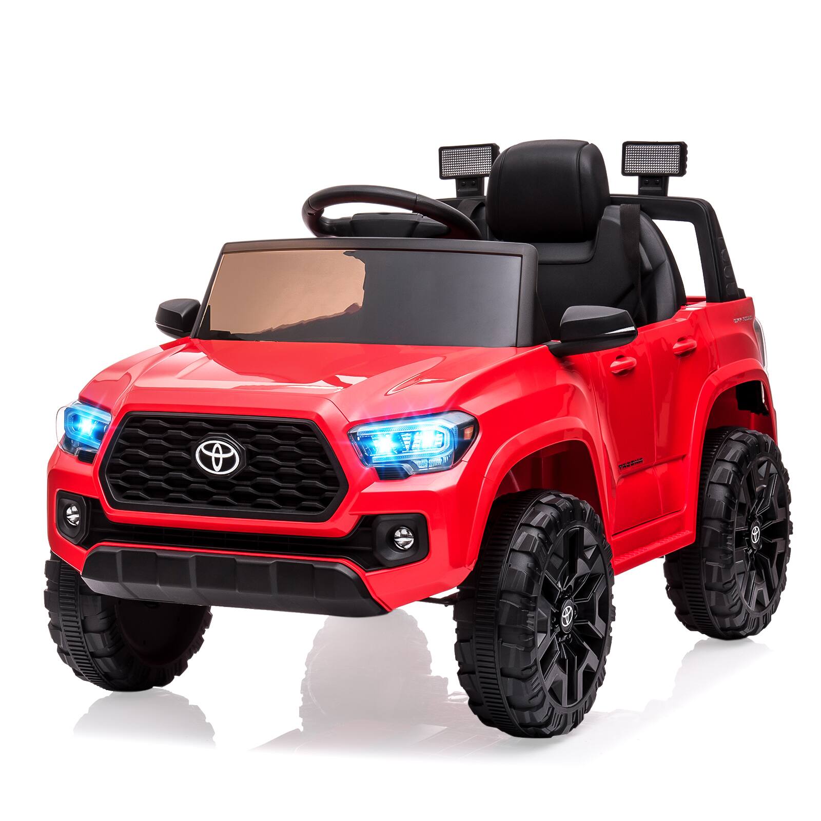 The truck is not the same truck as in the picture. Like a previous review stated, this is missing the media controls. Plus, this is the inferior 2 wheel drive version and plastic seats, not the 4 wheel drive with leather seats. Also, I just finished assembling this truck for my son's Christmas gift and the rear wheels seems like its going inwards, and it's most likely the rear axle that got bent during manufacturing. Overall, what a disappointment. Will have to dissemble, pack it up, and return it, what a waste of time. Do not recommend!