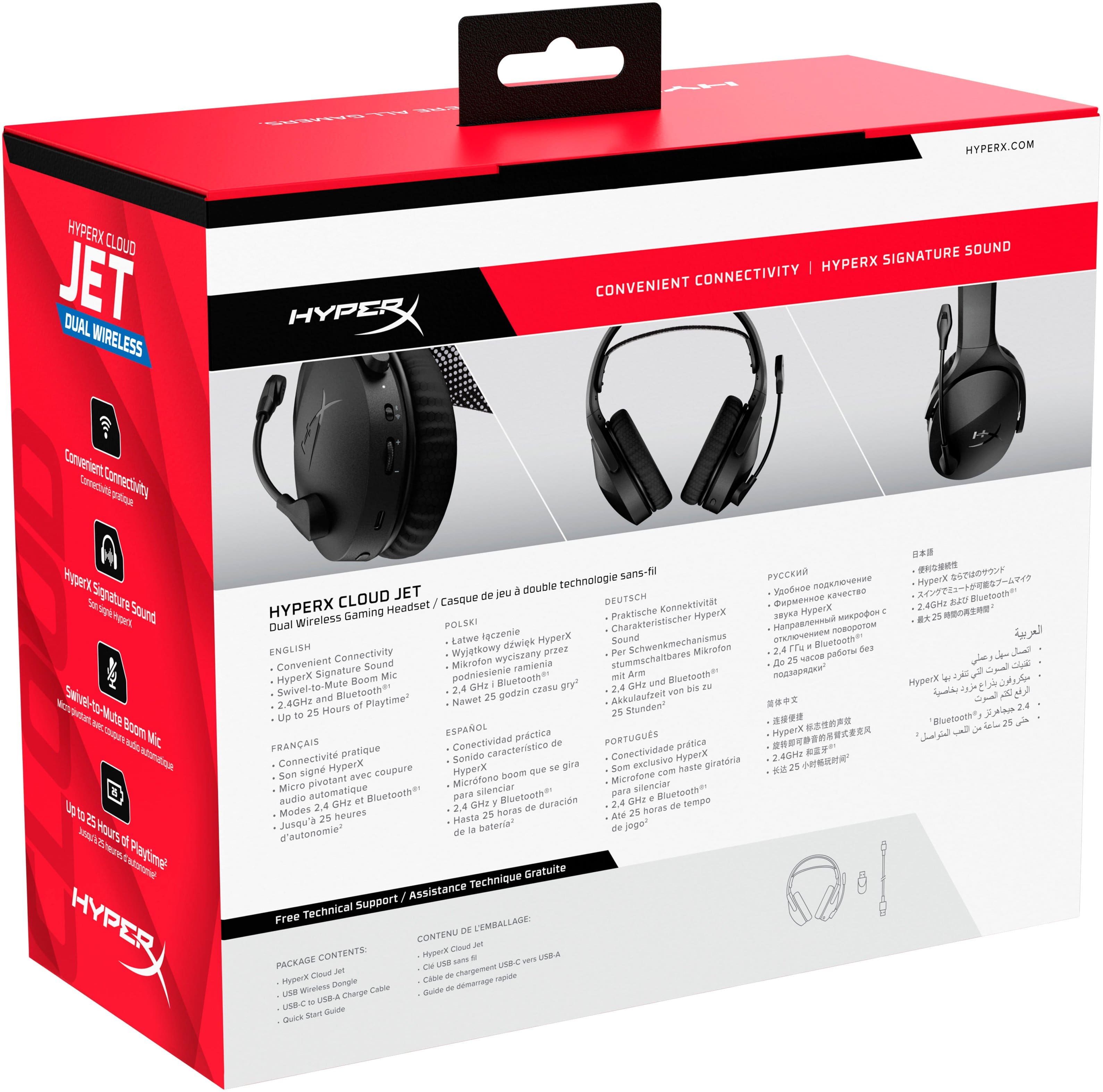 The HyperX Cloud Jet Dual can connect via USB-A Dongle or Bluetooth. Both are simple in that you just set the switch on the Left ear of the headphones to the desired mood, then press the multifunction button to turn on the headset and go. As Plug-&-Play as you can get. Connecting via Bluetooth was super simple and worked without any issues.
