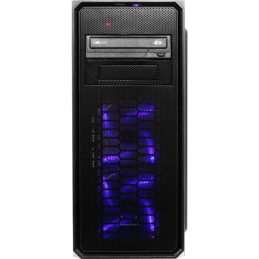 As another review stated, there are no internal lights. It comes in a "Thermaltake" case and the only lighting is for the CD drive. There are no lights when you boot up the computer, so the only way to know it's on is when you hear the fan run.