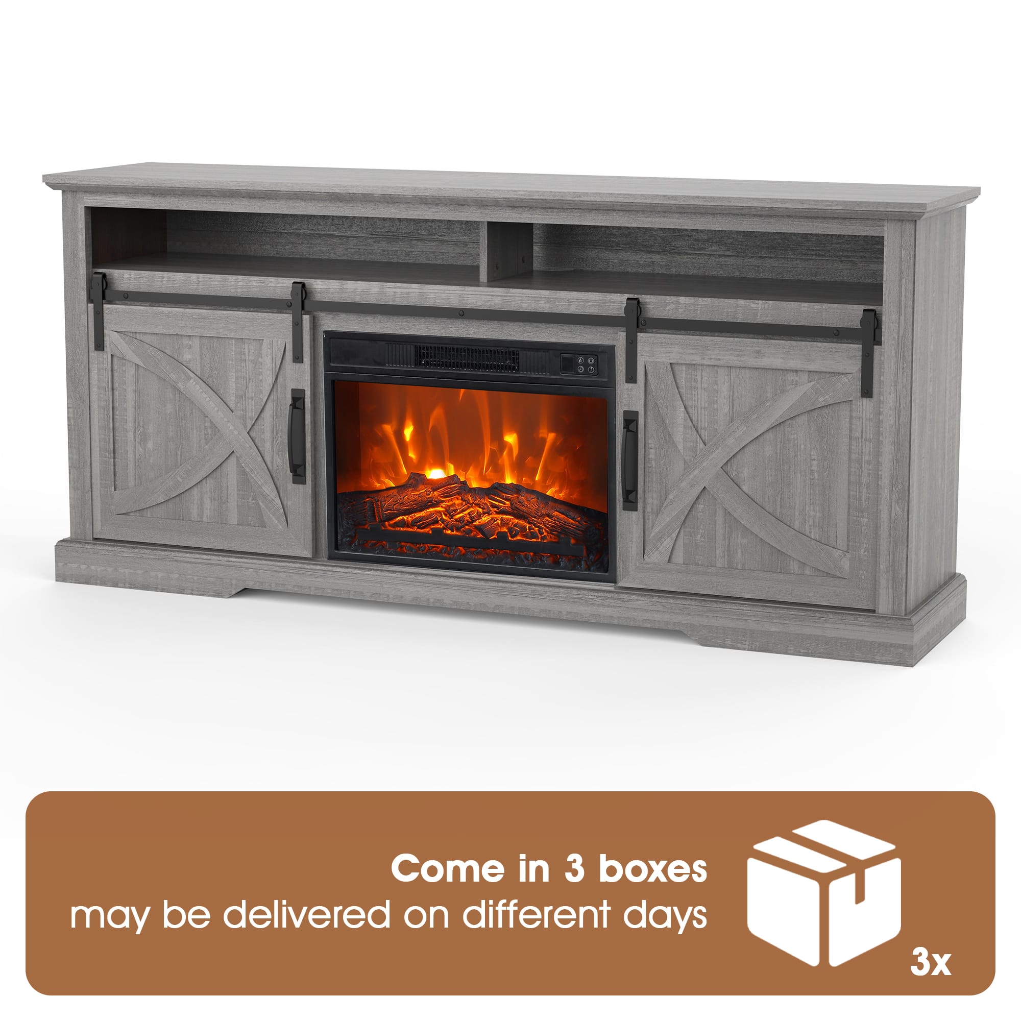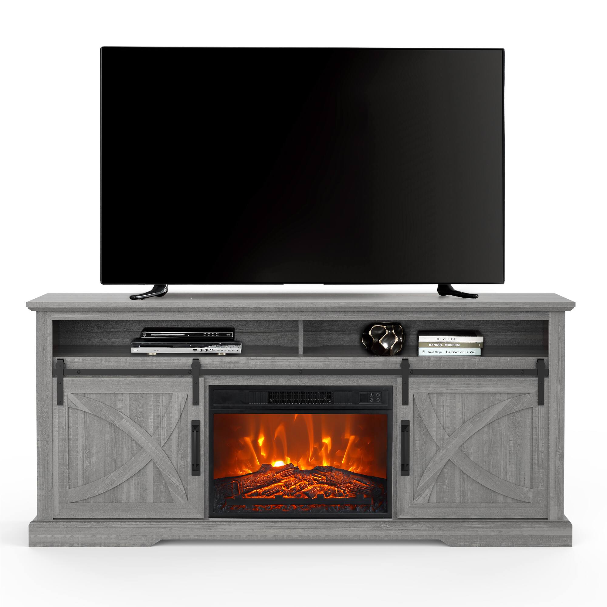 ||Posted .This reviewer received promo considerations or sweepstakes entry for writing a review.I love the tv console with fireplace and barn doors. It’s adds a stunning touch to my already beautiful living room. The heater in the fireplace works great. I enjoy relaxing in the evening with the fireplace on.