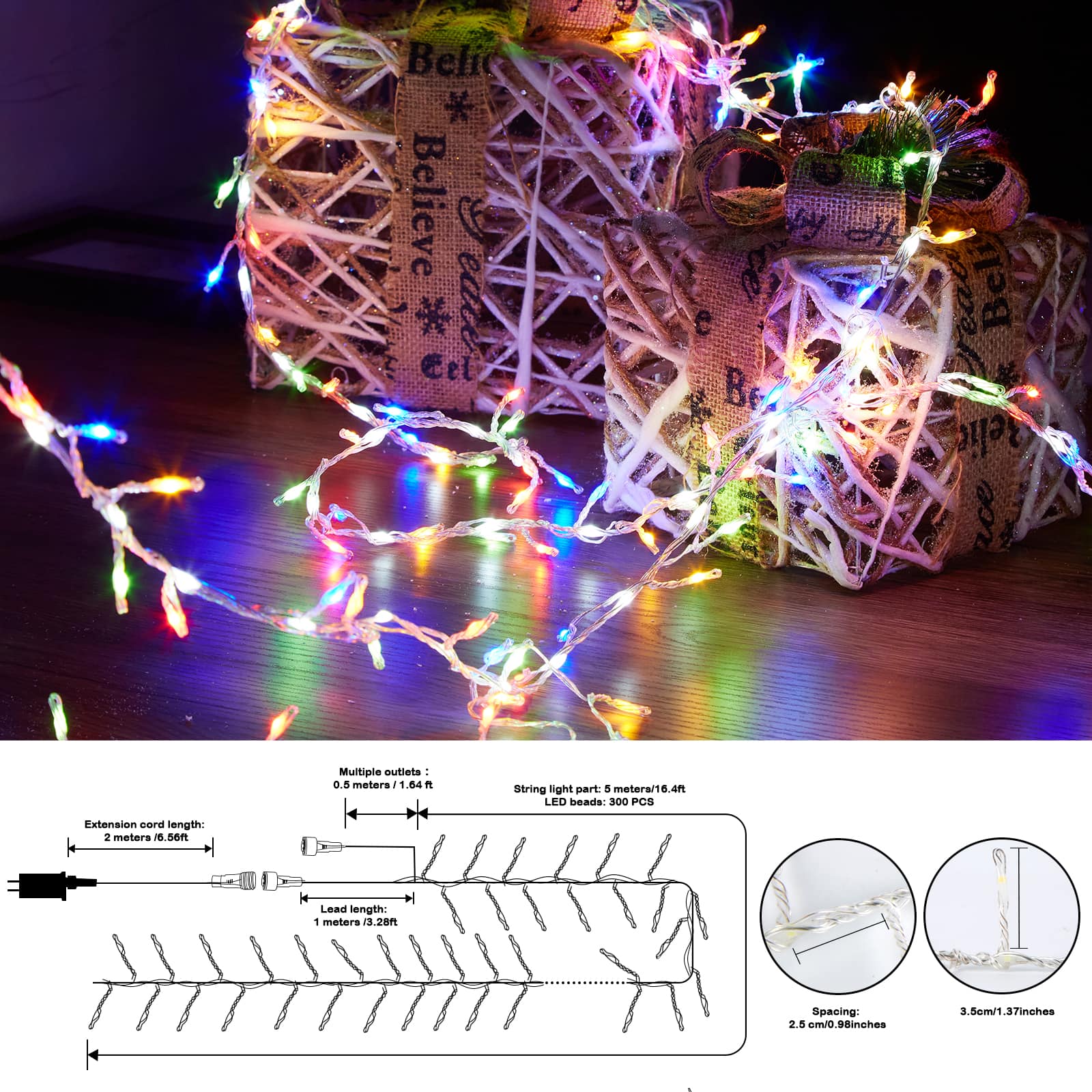 The color of these lights is very muted and opaque. Not like what they show in the picture. Had to return them. They were barely visible in terms of color but were quite bright.