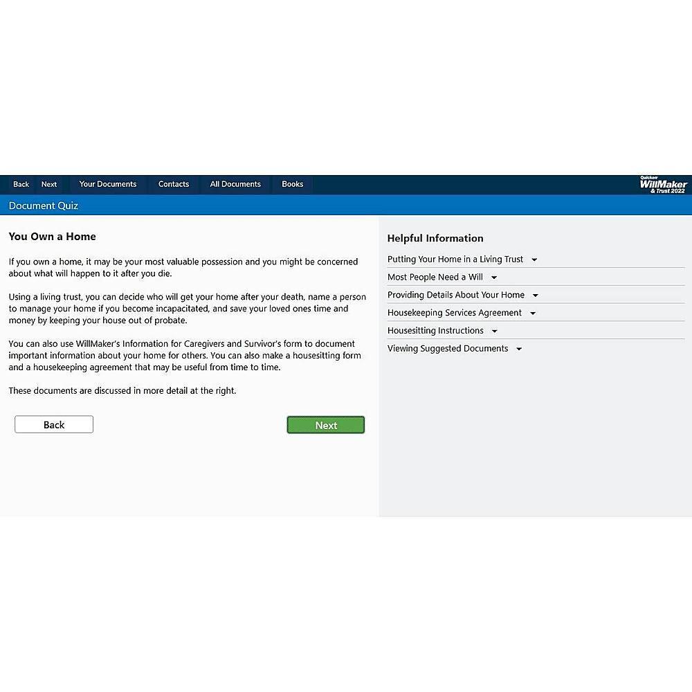 The program walks you through all the steps necessary to create a will, but the app put document is not as clean looking as previous versions.