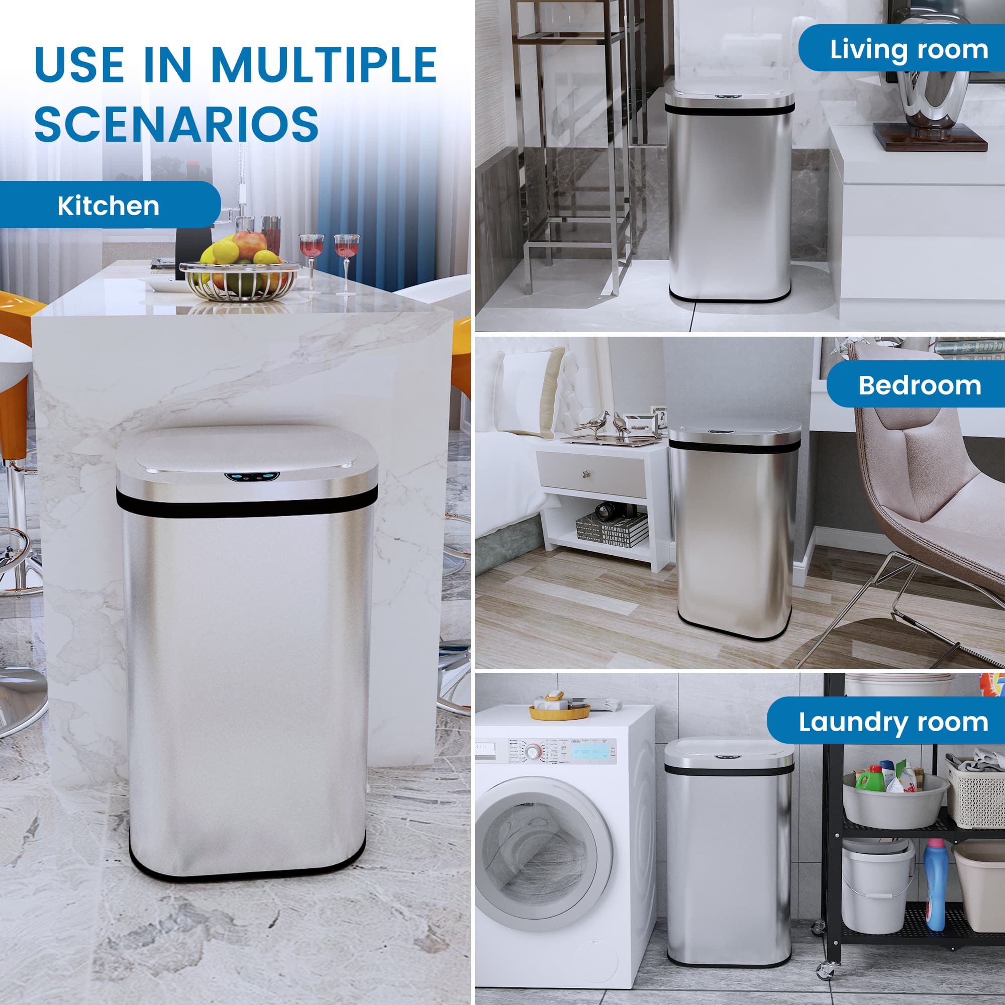 This trash can works as expected. I like the way it opens up right away and how my garage bag is able to open up and not fall in the trash.