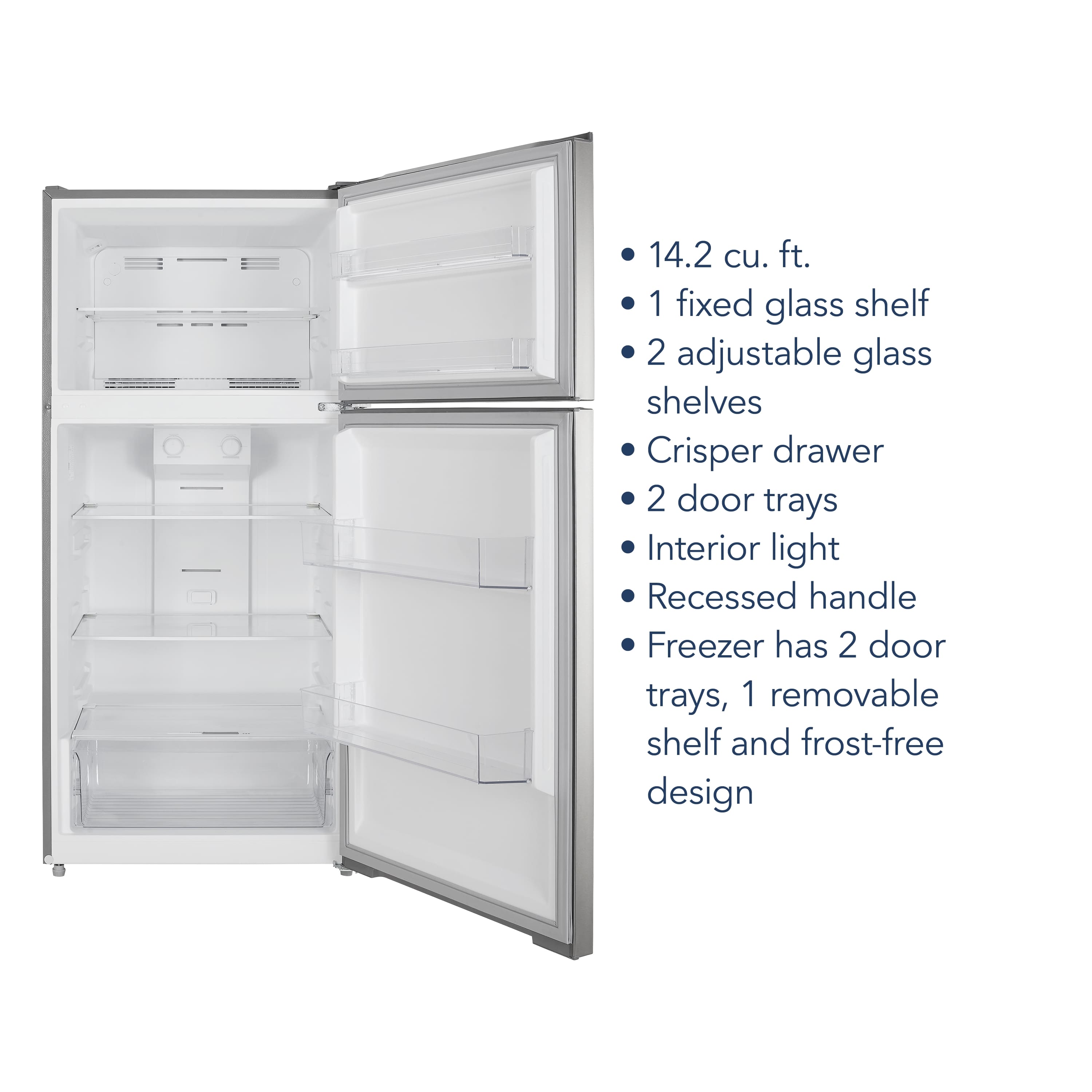 Customers are delighted by the overall performance, spacious capacity, and ideal size of the 14.2 Cu. Ft. Top-Freezer Refrigerator. Many appreciate its quiet operation, simple design, and accurate temperature control. However, a few customers have noted concerns about the shelf quality.