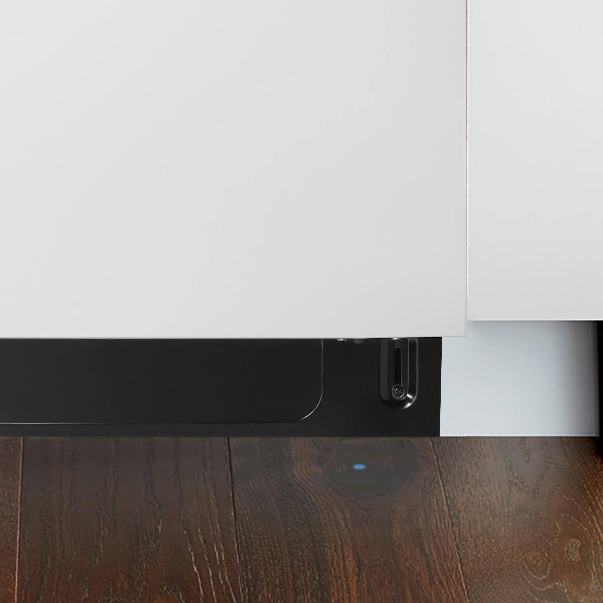Looks great, modern and sleek. Great dishwasher for the price. Only complaint is that it occasionally has the error about something pressing on the buttons. Only way to clear this is to trip the breaker.