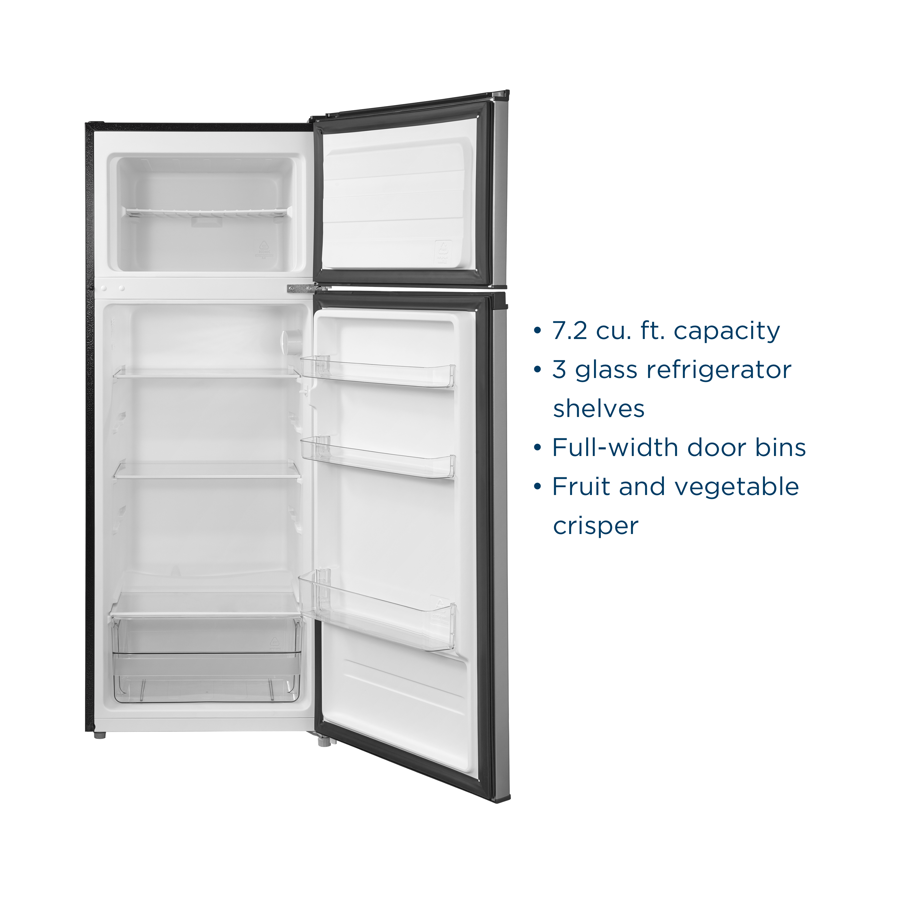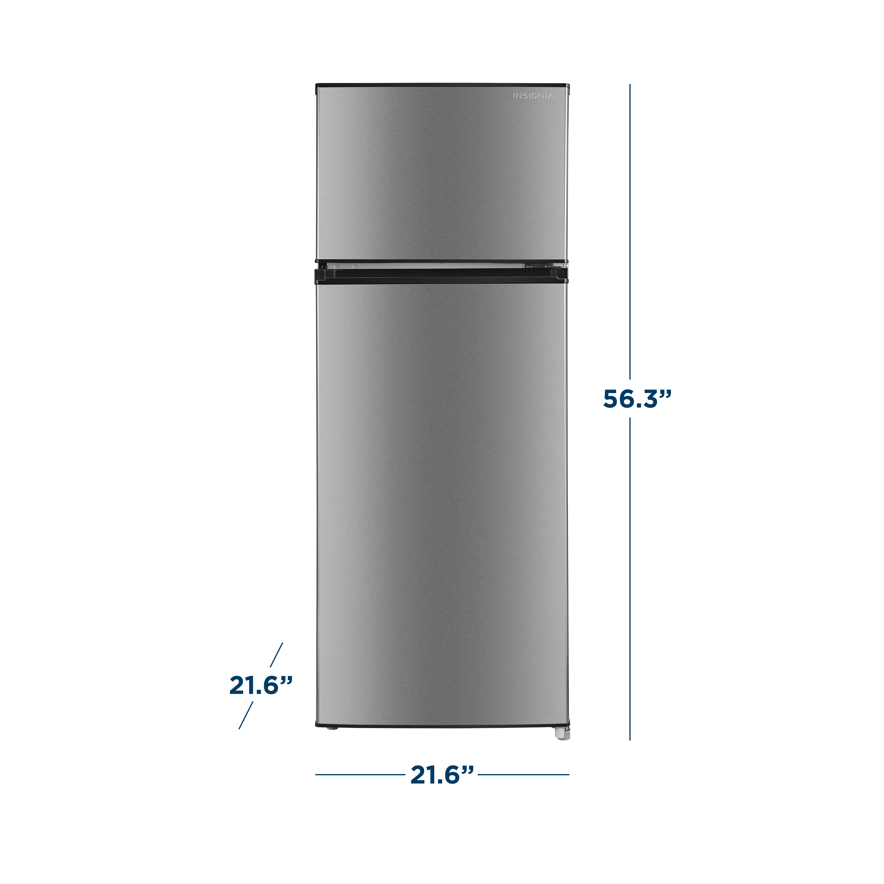 |Posted .This reviewer received promo considerations or sweepstakes entry for writing a review.The Insignia 7.2 Cubic Ft Top-Freezer Refrigerator is the perfect size in between a mini-fridge and a full size refrigerator with the convenience of a standard 115V plug. I have the perfect place upstairs in our family/playroom area. - Unboxing - The refrigerator is ready to go right out of the box. Be careful with the top corners, they can be damaged if not handled correctly. The 115V cord is tucked neatly into the back of the fridge and the glass shelves are protected well inside. - Design/Build - The design is clever. The refrigerator opens from left to right, but if you want to switch it, they give you instructions on how to do so. It has a classic stainless steel look with black on the sides. There are two wheels that help it roll along the floor and you can adjust the balance/height slightly in the front to accommodate your floors. There's one shelf in the freezer and no light. The refrigerator has two internal glass shelves and one fruit and vegetable drawer at the bottom. They feel like good quality and are easy to adjust up and down as needed. There are two small shelves in the door and one larger shelf with more depth. I measured the usable freezer space at about 16" wide x 14.5" deep x 10.5 tall. The usable refrigerator space at 36" tall by about 16.5" in depth by 18" wide. It weighs about 80 pounds and is easy to carry for two people. - Performance - This unit requires manual defrosting, but after several days the freezer looks good with no distinct levels of frost. The refrigerator did have a noticeable layer of frost starting to build up on the back wall. This is more likely to happen when warm air enters the unit, leaving the door open, or if you have something blocking the air outlets. Most importantly, I put a thermometer in the fridge and it consistently stayed at 40 degrees Fahrenheit. You can set the temperature of the refrigerator with a button and 4 LED indicator lights. If you long press the temperature button for 3 seconds it will "Super Cool" the refrigerator and indicate with LEDs 1 and 2 coming on simultaneously. A 6 second long press will super freeze the freezer and indicate by LEDs 3 and 4 coming on simultaneously. This is good if you are preparing to load up the refrigerator or freezer for the first time. The unit is also very quiet. I measured it around 42 decibels. The doors are largely fingerprint resistant. I have two small kids that have tested it thoroughly. - Pros/Cons - -Pros- - Operates on a standard 115V wall plug - Energy Star Certified (Approx $48/yr) - Reversible Door - Glass Shelves - Plenty of Refrigerator Space - LED Lighting -Cons- - Manual Defrosting - No Freezer Light - Needs a couple of adjustable levels in the door This is a great value for a refrigerator/freezer in an extra room. I found it to be perfect for our upstairs Family/Play room. It performs well, operates quietly, and has a ton of space. Even though it's not perfect, I'll give it 5 stars for some exceptional features and consistent performance. I highly recommend it!