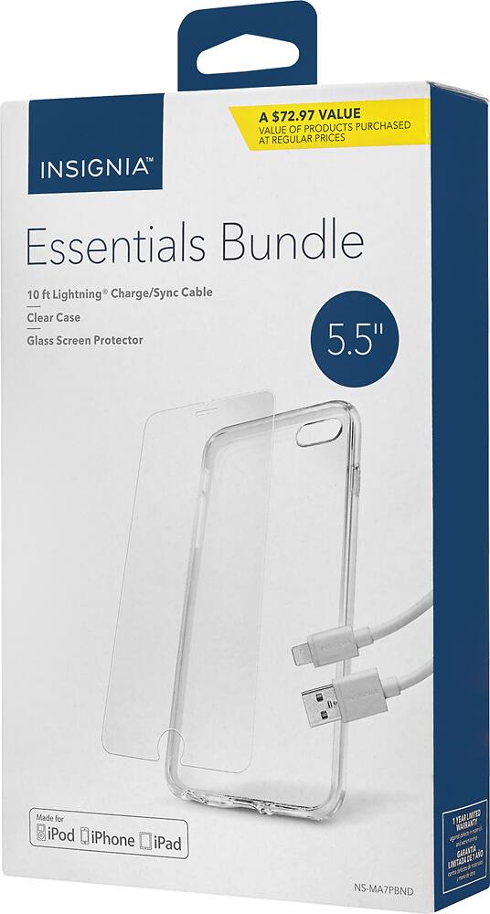Customers enjoy the long cable, excellent screen protector, and protective case included in this Essentials Bundle for Apple® iPhone® 7 Plus, finding it to be a great value. Many appreciate the overall protection offered by the bundle. A small concern was raised regarding the camera lens not being fully protected by the case.