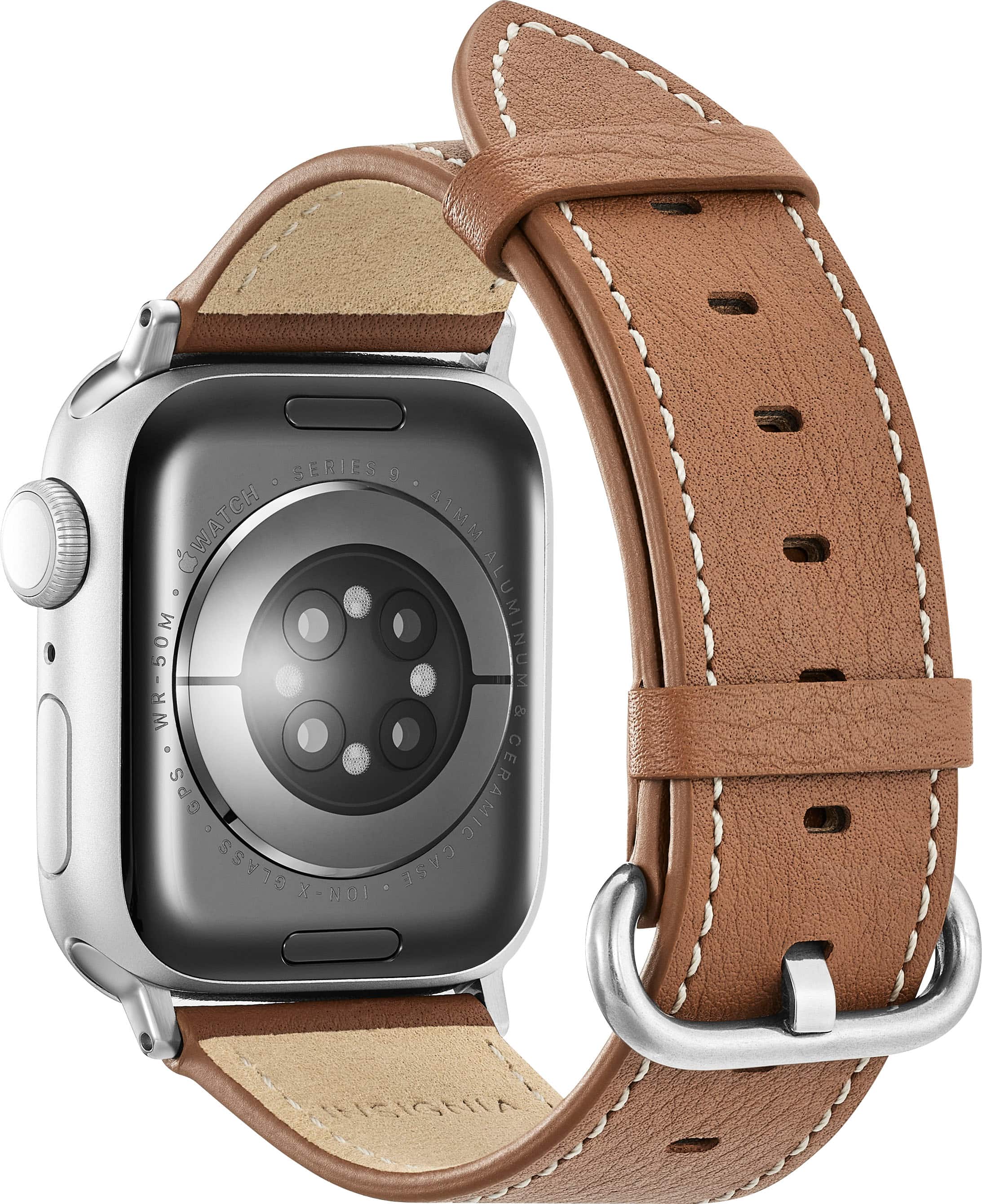 After wearing the Insignia Genuine Leather Band for my Apple Watch for several weeks, I must say it's quite good for its price range. The chestnut color is rich and elegant, adding a touch of sophistication to my everyday wear. The genuine leather feels high-quality, light, and comfortable to wear all day. It was a bit stiff at first, but it broke in easily after a few wears. Installation was a breeze, and the connectors felt secure.