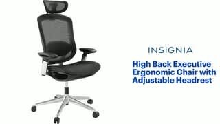 |Posted .This reviewer received promo considerations or sweepstakes entry for writing a review.Insignia has released their premiere desk chair - the High Back Executive Ergonomic Chair w/Adjustable Headrest. In the box includes all the chair parts, tools, hardware, and instructions. The chair comes with a manufacturer's 1-year warranty. First off, when you open the box with chair parts and styrofoam, don't be intimidated. Once you see the parts lined up on the floor as I have done in one of my pictures, you see it's not difficult to put together. 3 bolts holding each arm, 4 bolts attaching the back to the seat, and one bolt holding the headrest in place. Everything is super easy, but make sure you have a vacuum handy when you unpack it because loose white styrofoam may get a bit out of hand. PROS: ----------- * Nice look with polished aluminum accents and mesh material which breathes easily. * A mostly comfortable chair with a ton of options. Good height on the seat, and arm rests. * Sturdy with no rattle, squeaks, or "cheap feel". * MOVEMENT: (1) Hydraulic up/down using right control (2) Seat back has 4 locking positions or "open" where it just rocks front to back freely. See pictures for min/max angles (3) Arm rests move front to back freely, rotate freely, and raise/lower in 6 locking heights (4) Head rest slides (or clicks) up/down and also rotates front to back (see picture for min/max rotating angles) (5) Lumbar support slides in behind the chair into it's own slot, and the black piece has 6-7 clicks up/down to get the right height preference. (6) Full 180-degree swivel on a 5-arm polished base with plastic wheels. (7) The seat itself can slide forwards and backwards into 5 locking positions using a button on each side of the seat pressed at the same time. * Instructions came in English and Spanish and were easy to read with the illustrations provided. 2 Allen wrenches were also provided, one of which had a Phillips head screwdriver on it so the rear cover could be attached. One of the bolts used to attach the seat to the back was cross-threaded, so luckily, the package came with 1 spare of each bolt. I was able to use a spare and continue putting the chair together. CONS: ----------- * The lumbar support was a bit much for me, even with adjusting the black piece up and down to max/min positions. I actually pulled the lumbar support off (it slides off, not bolted) because the chair itself provides enough lumbar support for me, maybe a little too much. If you like lumbar support or need lumbar support, you will get it with this chair. * There is no adjusting of the seatback spring. Some chairs allow the tension to be adjusted. This one is preset and is what it is. It's a happy medium but I wouldn't mind it being a bit looser. * The headrest will not stay in a rotating position. It eventually will roll forward until it stops in the upright positions; however it will stay at the clicked-in height. The rotation is not in a lockable or clickable position. OTHER OBSERVATIONS: ----------- * The lumbar support can be removed if not needed, and the chair still functions properly and looks fine. * The headrest can be removed using one of the Allen wrenches provided to remove the bolt attaching it, or you can just not install it. CONCLUSION: ===================== Overall, this chair gives you quite a lot of bang for your buck and looks great in any office setting. It has a clean look, is pretty comfortable, and has plenty of options to change in order to get that perfect seat position. For me personally though, I'd like to have a way to still have less lumbar support even though I know that's a good thing. For me, a little less lumbar would just be a bit more comfortable. The build is quite good and parts feel solid and durable. The wheels roll with ease, and the chair in general doesn't "clunk" around. Even though my preference for less lumbar is my biggest complaint, it's something I can still get used to and would still recommend to others. And if not for the extra hardware (bolts), I would not have been able to finish building - so kudos to Insignia for including spare bolts!