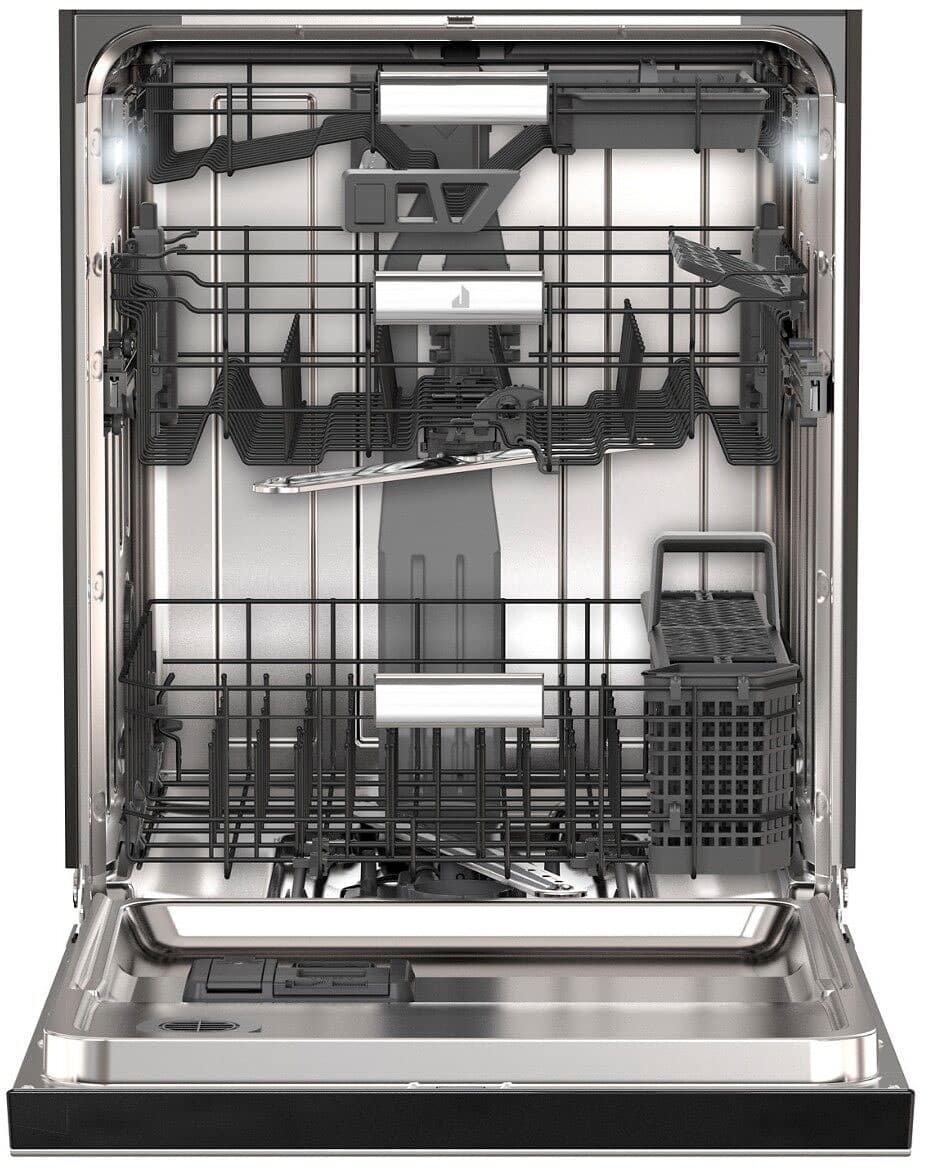We have used the dishwasher four months now. Overall very happy. Our favorite features are the 3rd row design which allows cups, small drinking glasses, low plastic storage containers and such to be loaded and still has a large enough knives tray. We also like having lighting inside. A few design flaws we have noticed are: the cleaning action doesn't extend into the far corners of the cabinet so if you have a cup or glass with stuck-on food they do not come clean when loaded into the corners of the 2nd rack, another issue is our model which has matching cabinet panels makes it hard to see the status indicator light in daylight or with the kitchen overhead lighting on full brightness, and related to the panels the instuctions for installing the cabinet panels on the face of the dishwasher are incorrect by 1/4" and don't take into consideration a separate door and drawer panel look which is what we have - instructions are only for a single "slab" cabinet cover. These issues are why I didn't give this dishwasher 5 stars.