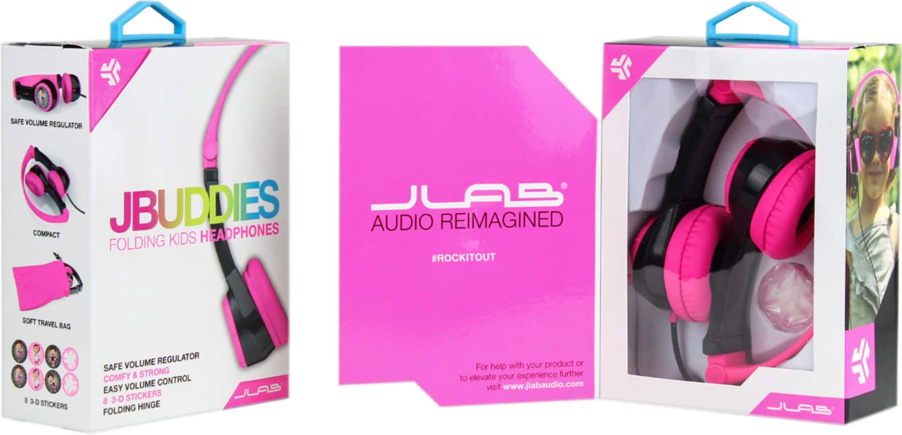Customers commend the JBuddies Folding Over-the-Ear Headphones for their adjustable volume dial, soft ear cushions, and cute designs. The headphones are praised for their durability and the ability to personalize them, making them suitable for both children and adults.