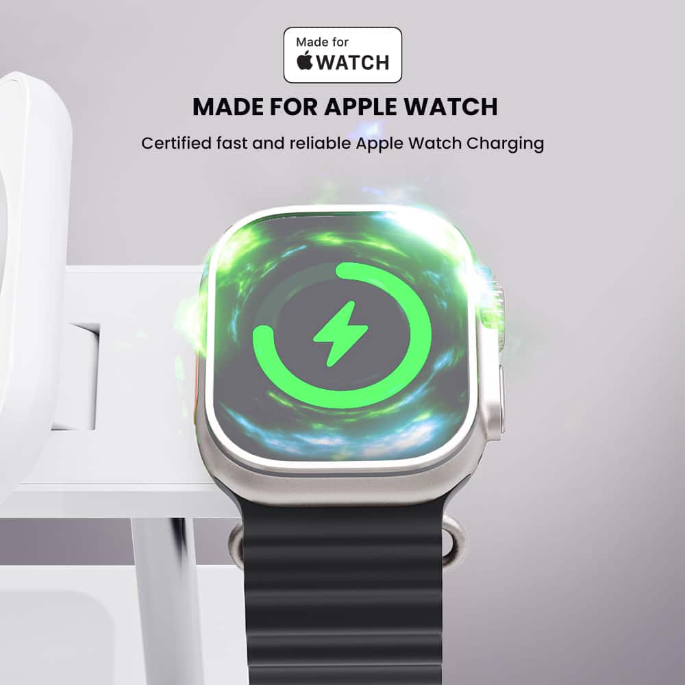 - Additional stations simultaneously rapidly charge your watch and AirPod case.