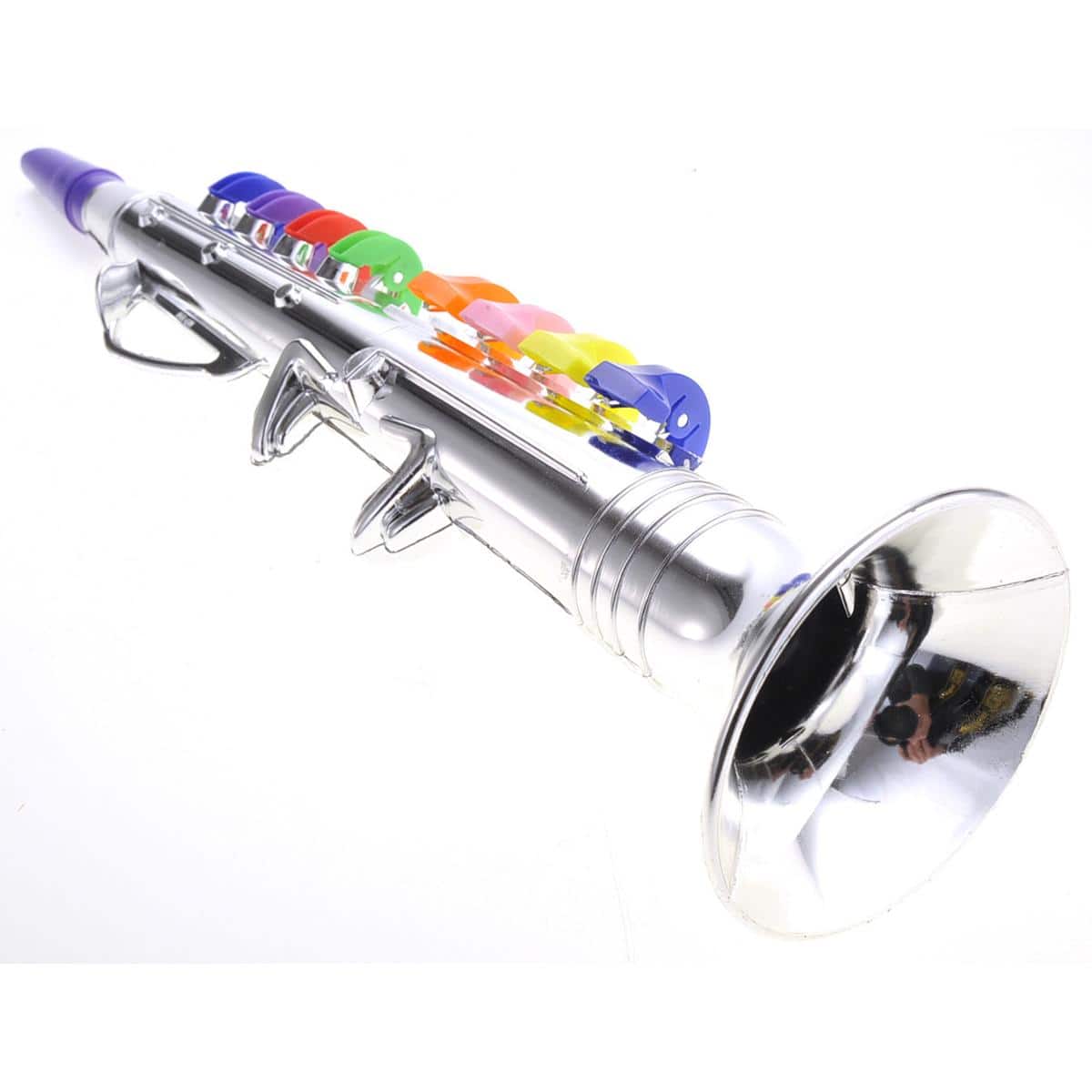 It’s just made to look like a musical toy. It dies not actually make any sound. Just cheap plastic toy that does nothing.
