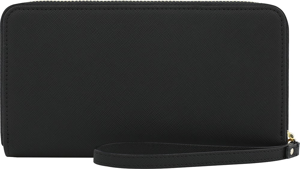 When running errands I usually swap my bags for wristlets. And have to hand carry my phone or place it in my back pocket. This easily carries my cards, cash and phone (note 9 with a slim case). The zip around feature is great and keeps my phone and items secure. Price point is a bit high, I guess the name has something to do with it. If you are into Kate Spade you may feel different. Personally I am not a KS fan. Best Buy had the instant rebate at the time of my upgrade, so it did not cost me anything. However it is a very nice product that I use almost daily. The black is chic. Thankfully not an over the top design or marked with a large emblem. Seems to be of good quality and should last as long as my phone does.
