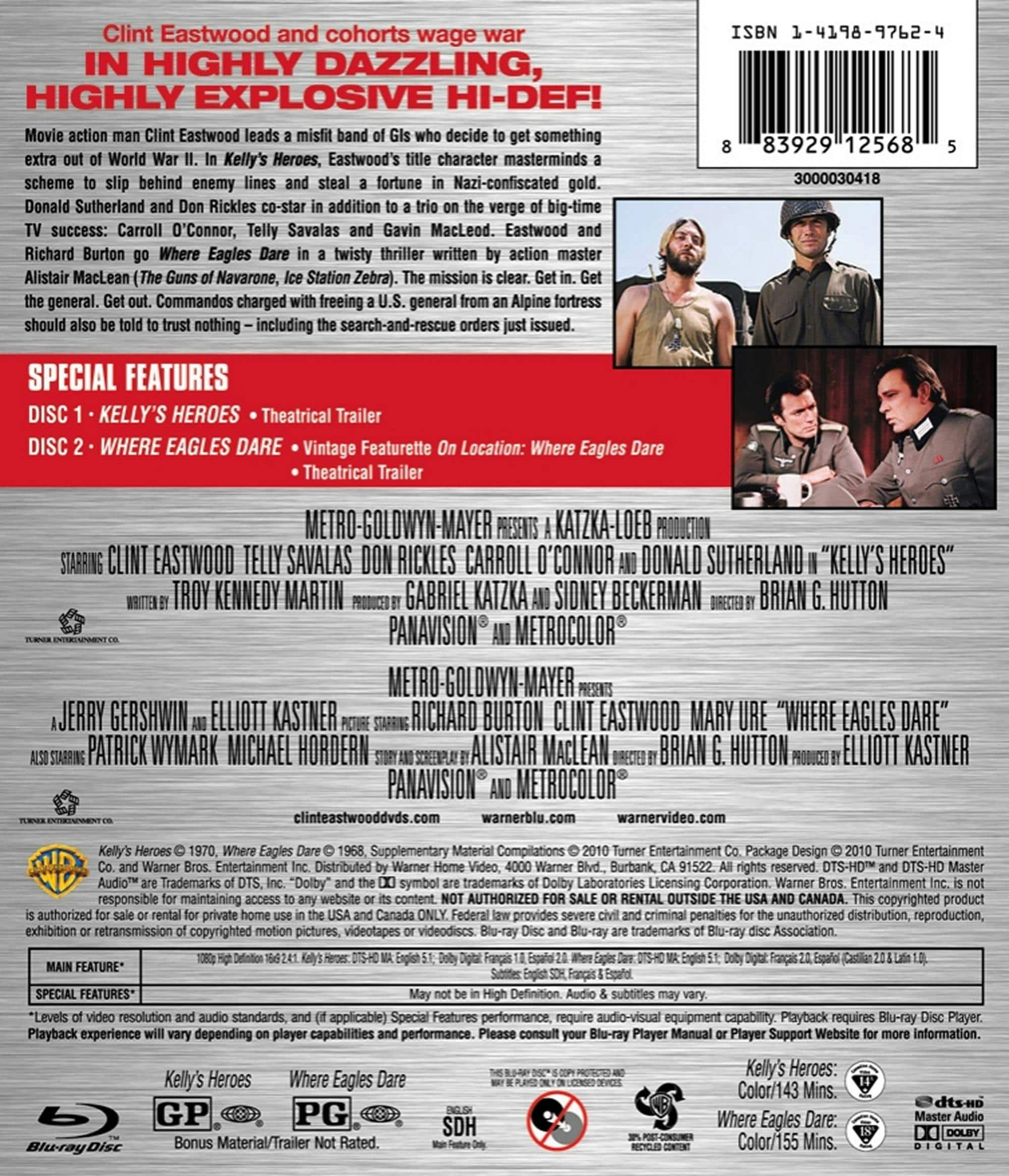 This double feature is so good! Two classic war movies in one collection. If you want some comedy with some good action sequences, Kelly's Heroes is worth watching. If you want espionage with some great action sequences, Where Eagles Dare is for you!