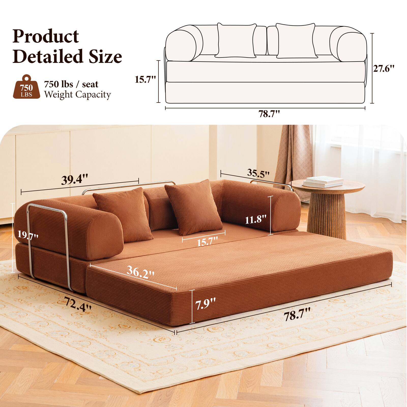 This review is from KERDOM - 78 Inch W Sectional Modular Sofa, 3-4 Person Corduroy Sofa Bed Foldable, High Rebound Density Sponge Sofa, Block Couch - Green